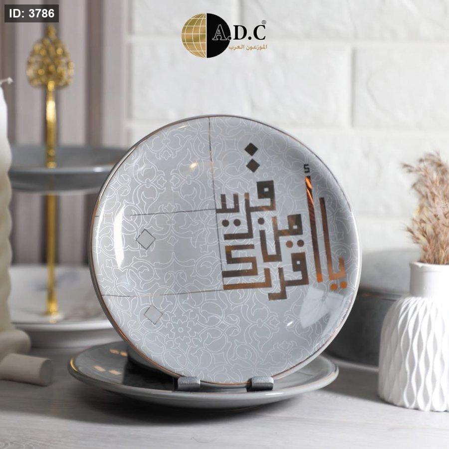 طقم ٦ صحون سيراميك مزخرفة بالخط العربي