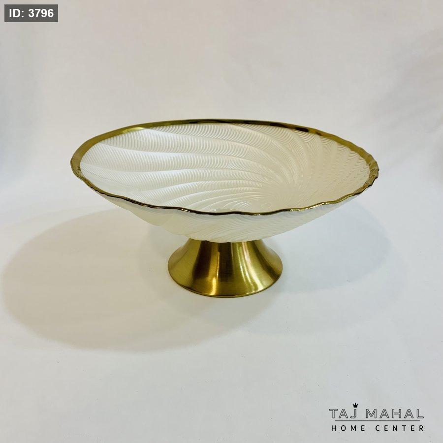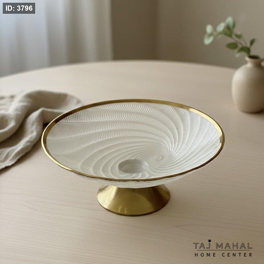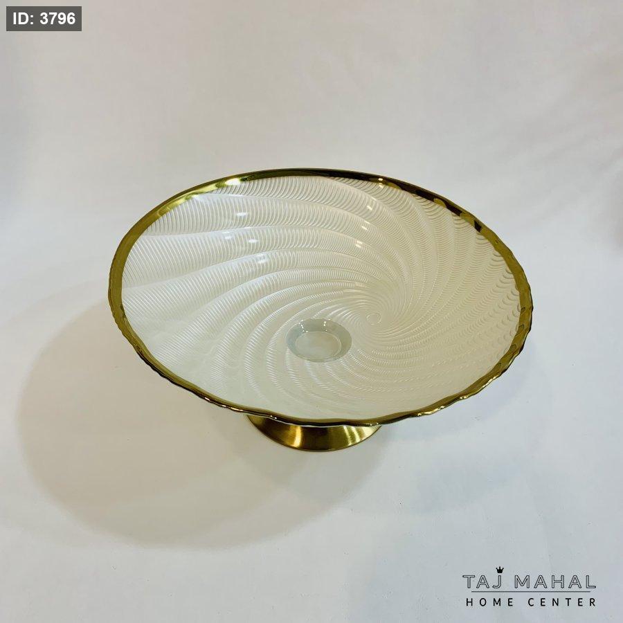 وعاء فاكهة زجاجي بقاعدة وحافة ذهبية