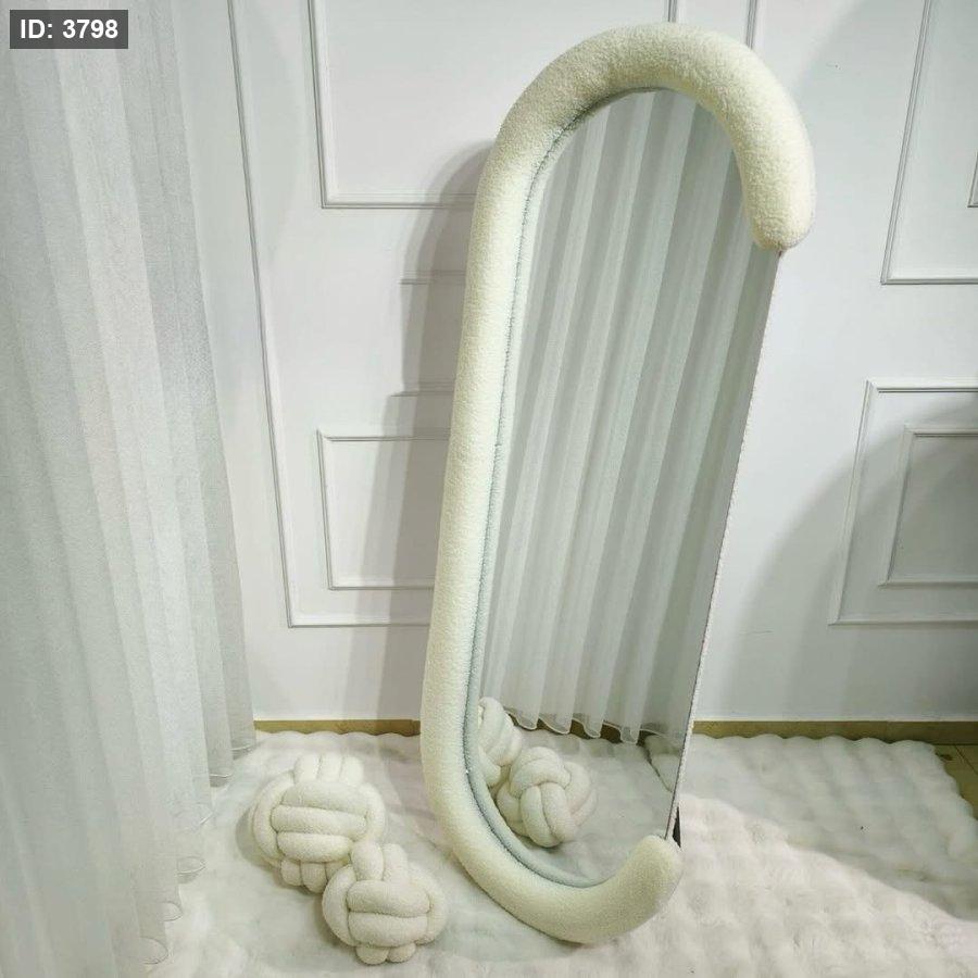 مرآة أرضية منحنية بإطار مخملي أبيض