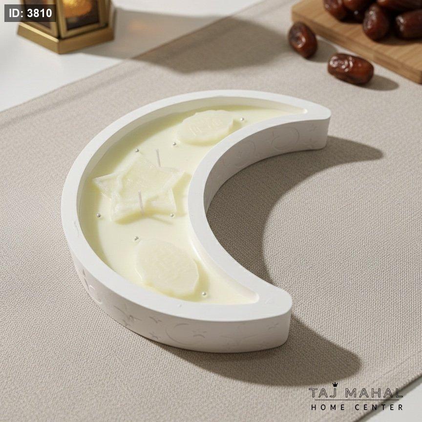 وعاء مزخرف على شكل هلال بداخله شمعة مع فتيلين