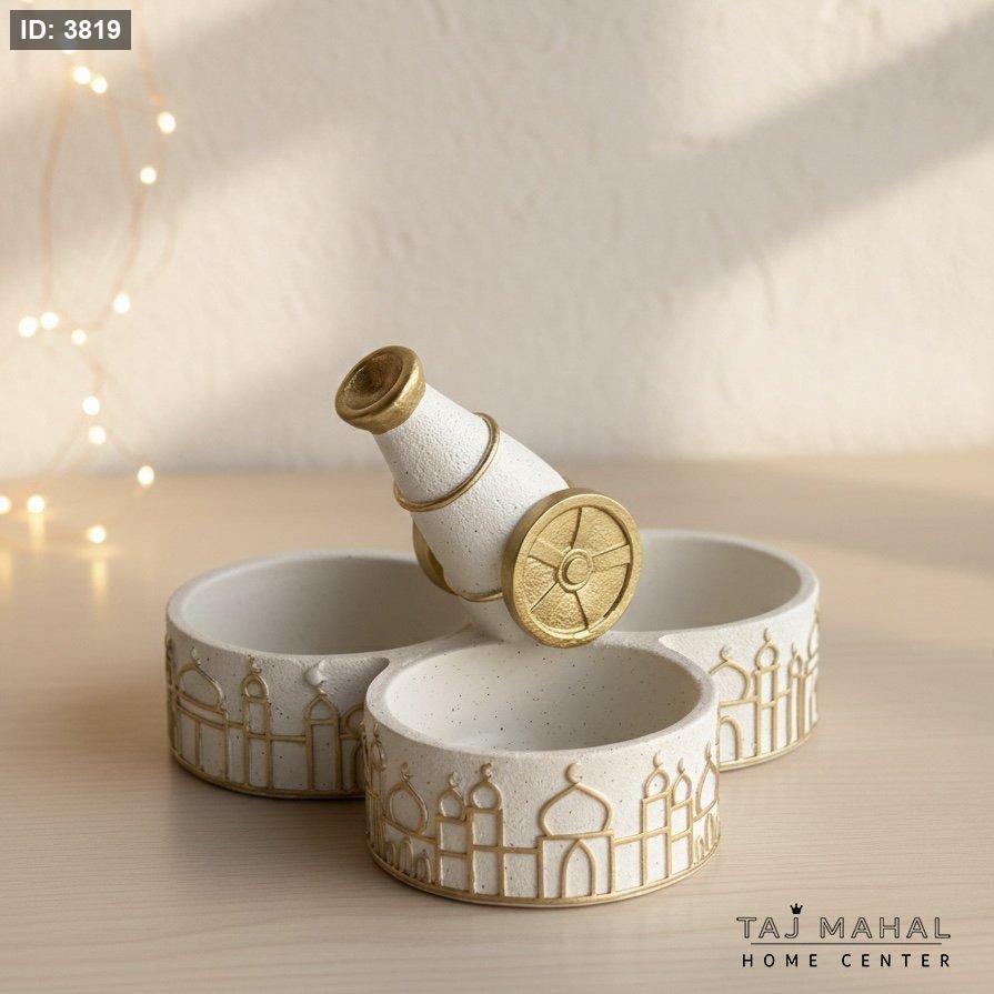 مضيفة رمضانية بتصميم مدفع رمضان وزخارف ذهبية