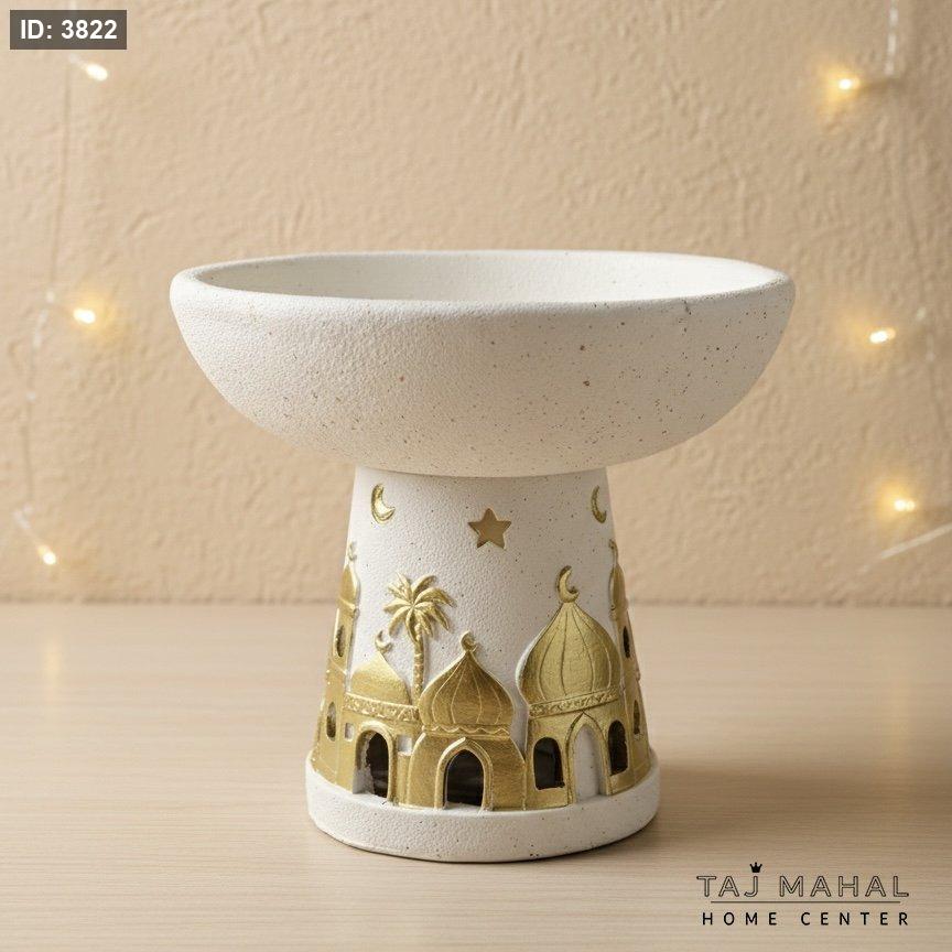 طبق تقديم بقاعدة ذهبية مع اضاءة داخلية