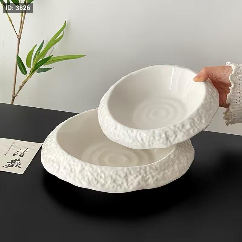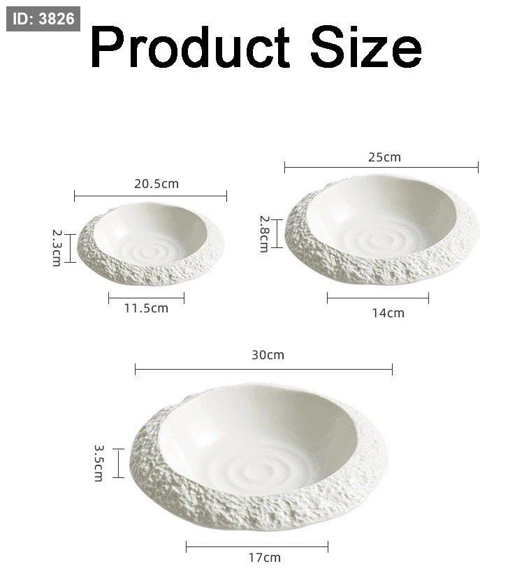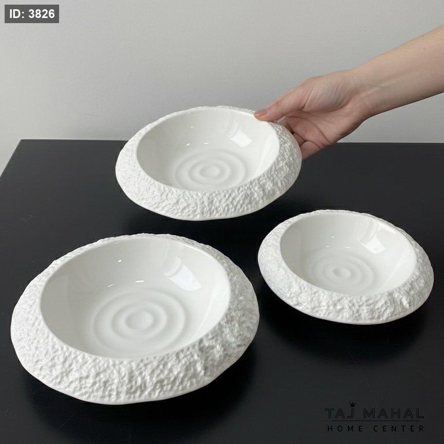 طقم 3 صحون ابيض سيراميك بنقش الصخور