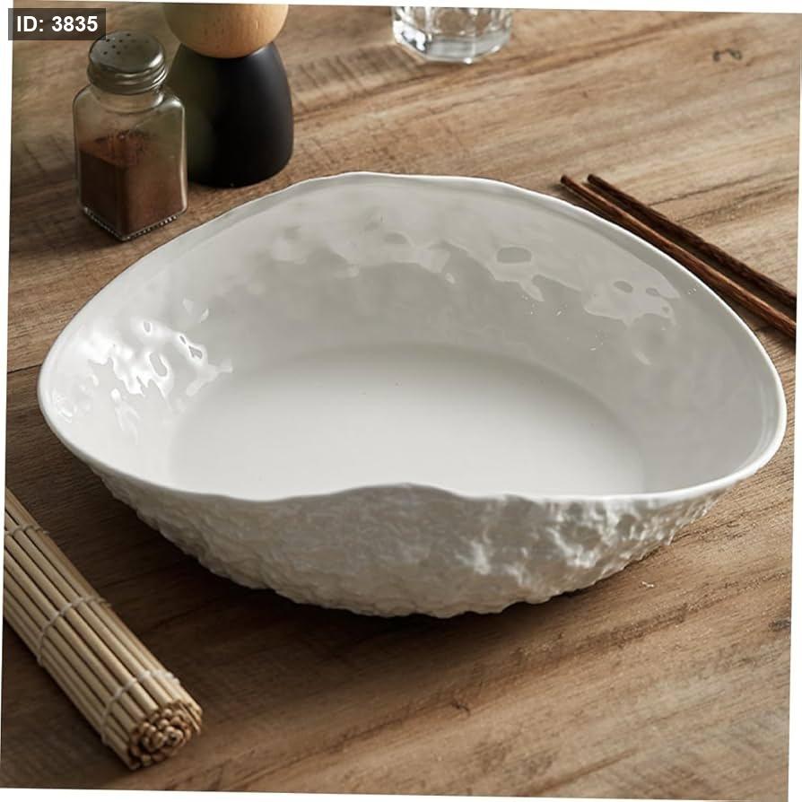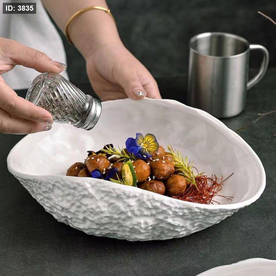 طقم أطباق تقديم بورسلان بيضاء ذات تصميم صخري