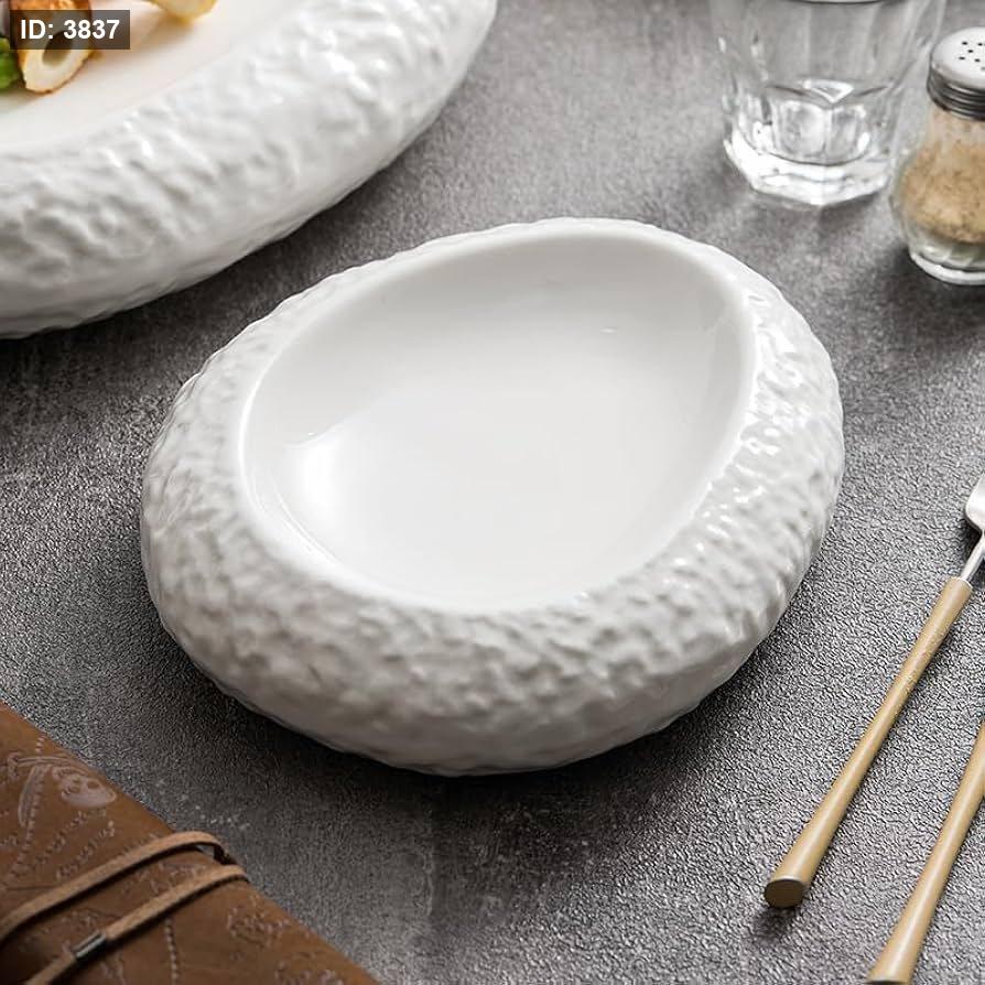طقم طبقين تقديم بيضاوي أبيض بحافة خارجية مزخرفة