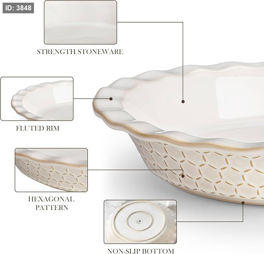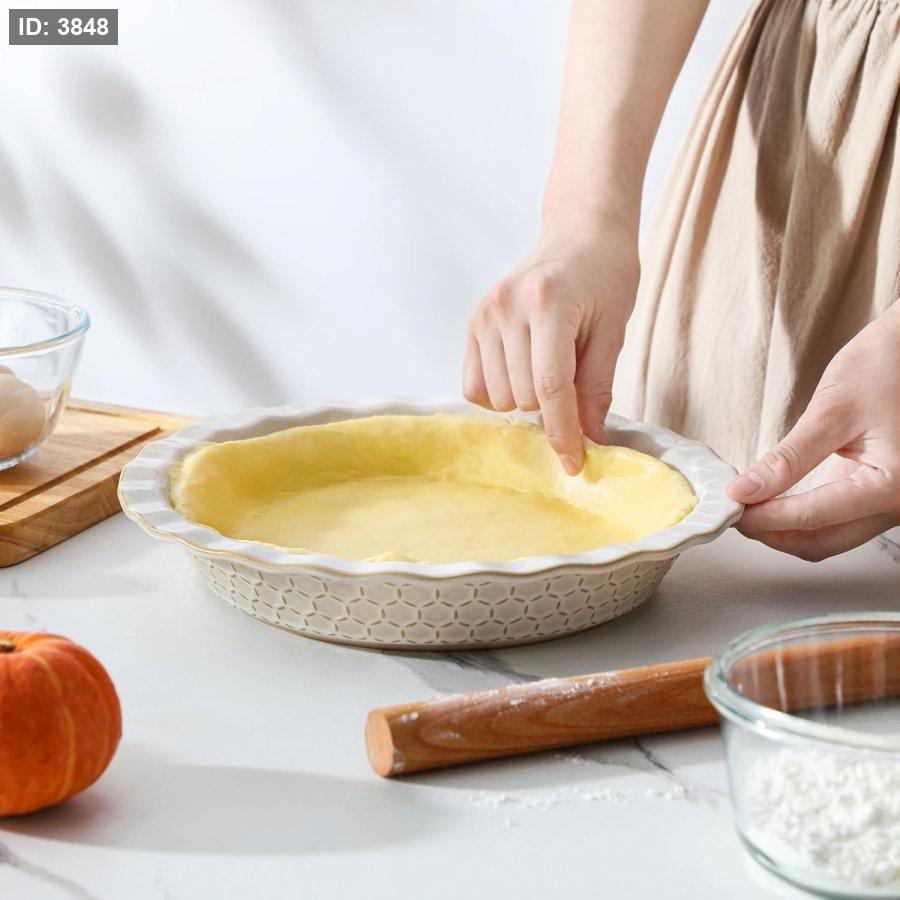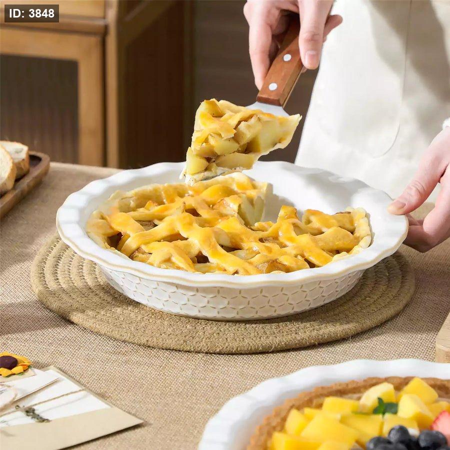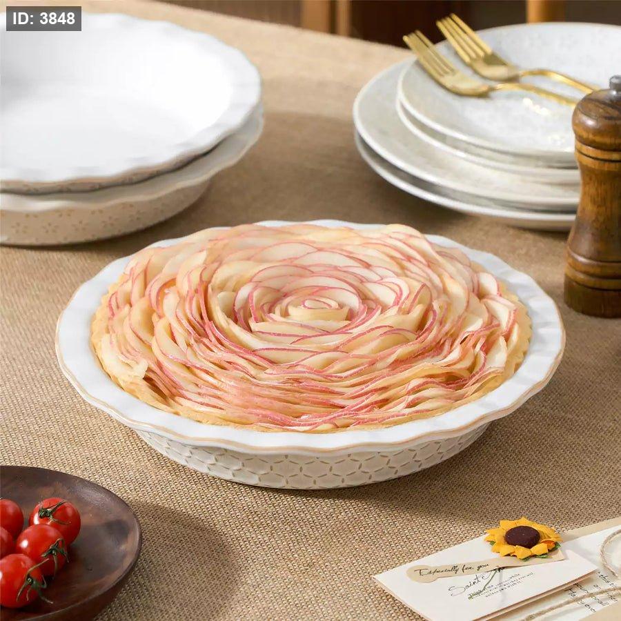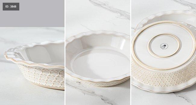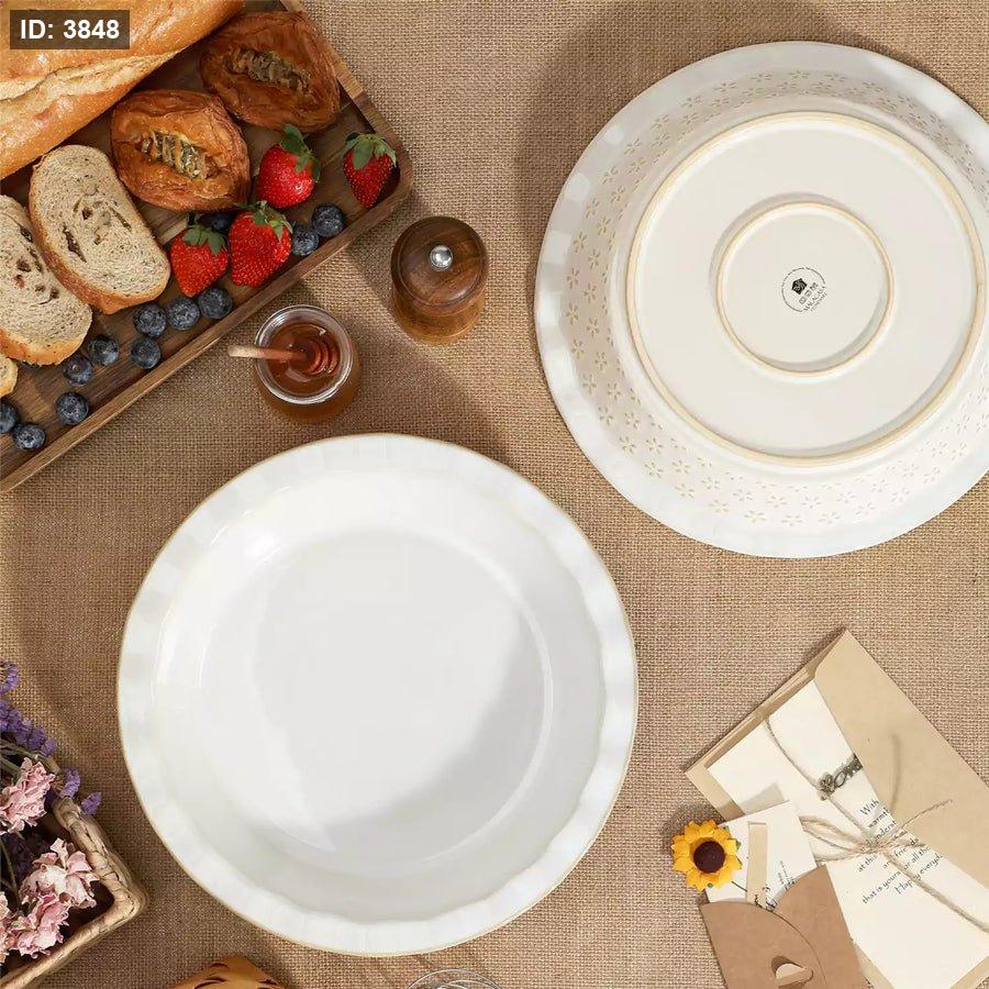 صينية فرن بورسلان بيضاء دائرية بحافة متموجة