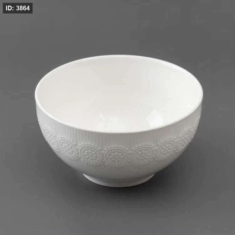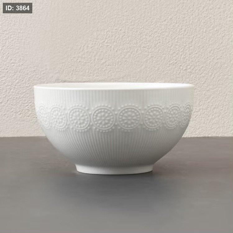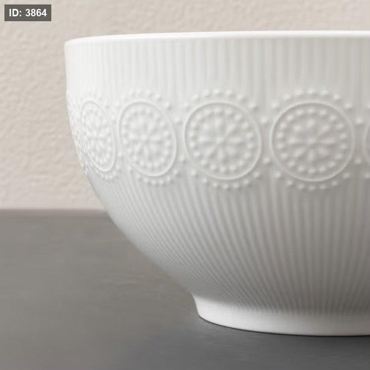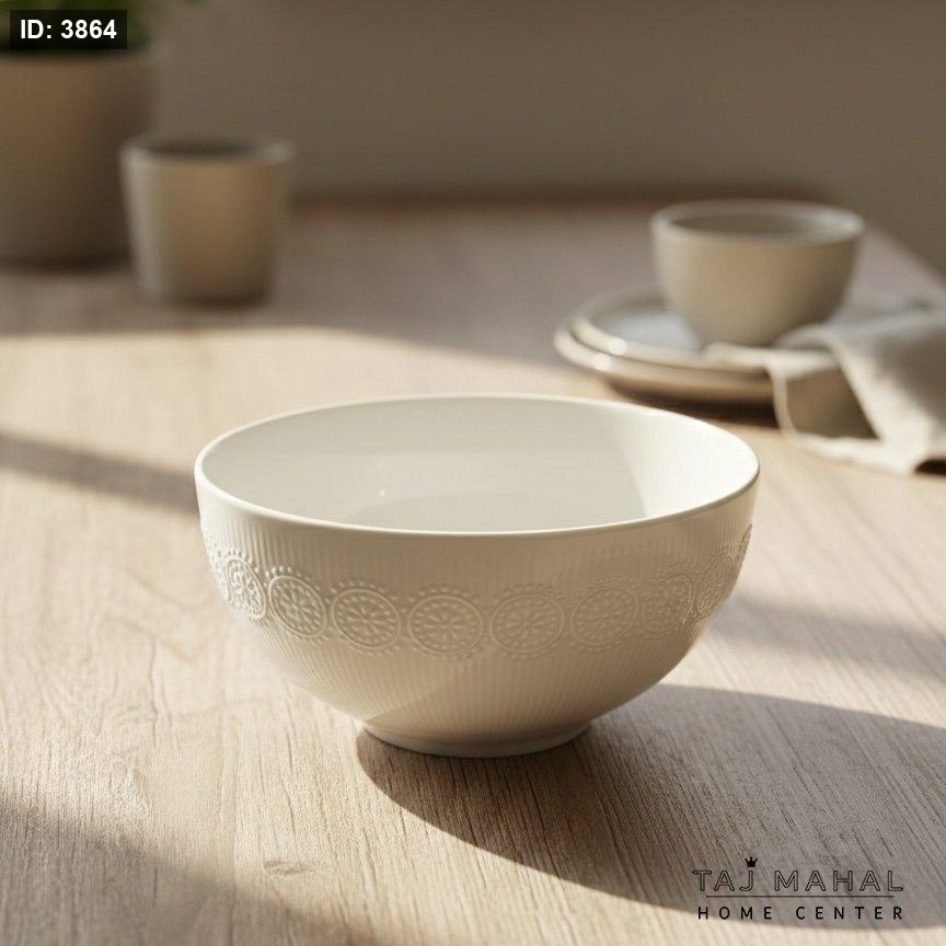 وعاء خزفي أبيض بتصميم منقط وخطوط عمودية بارزة