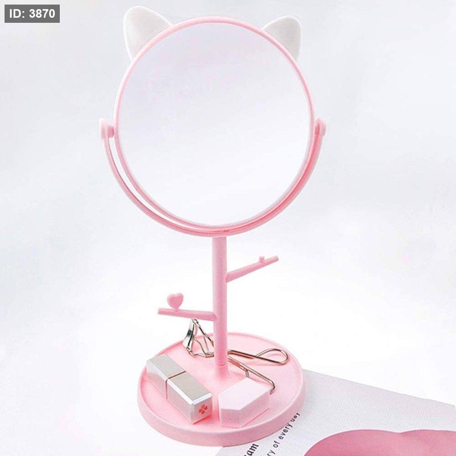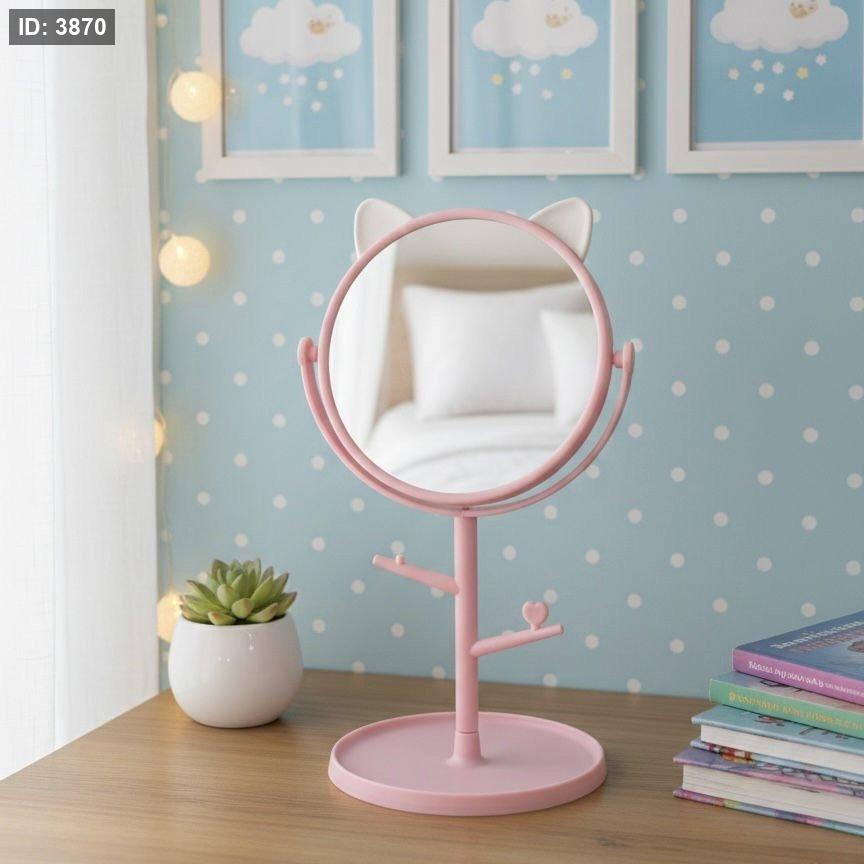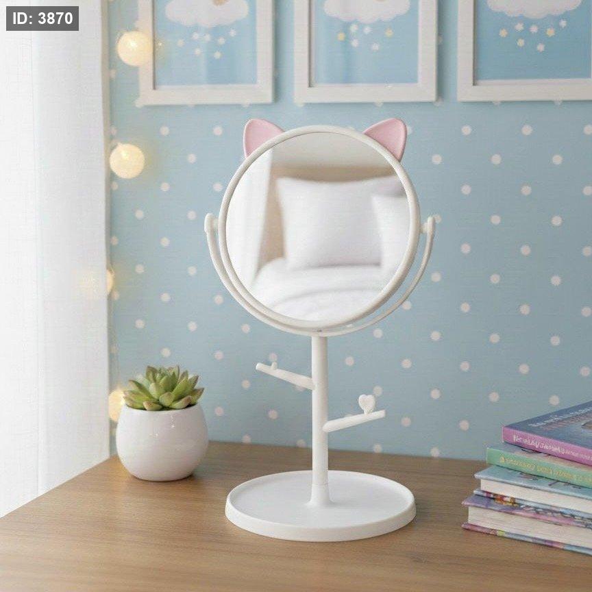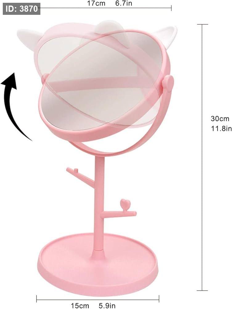 مراة مكياج لطيفة قابلة للدوران مع تصميم اذني قطة
