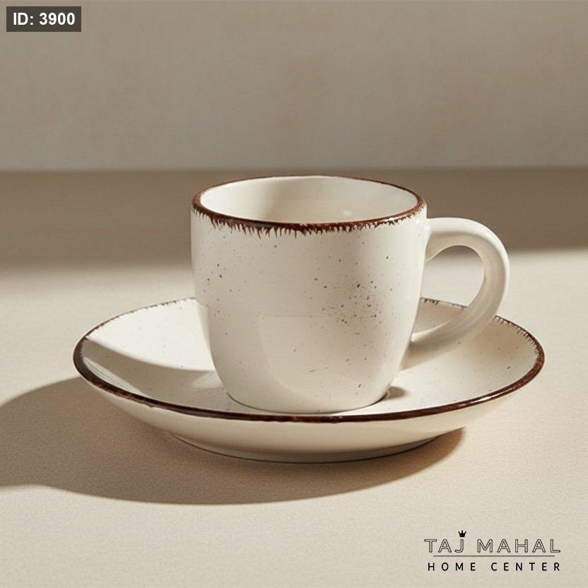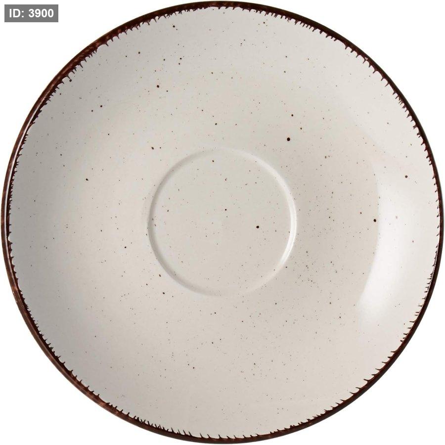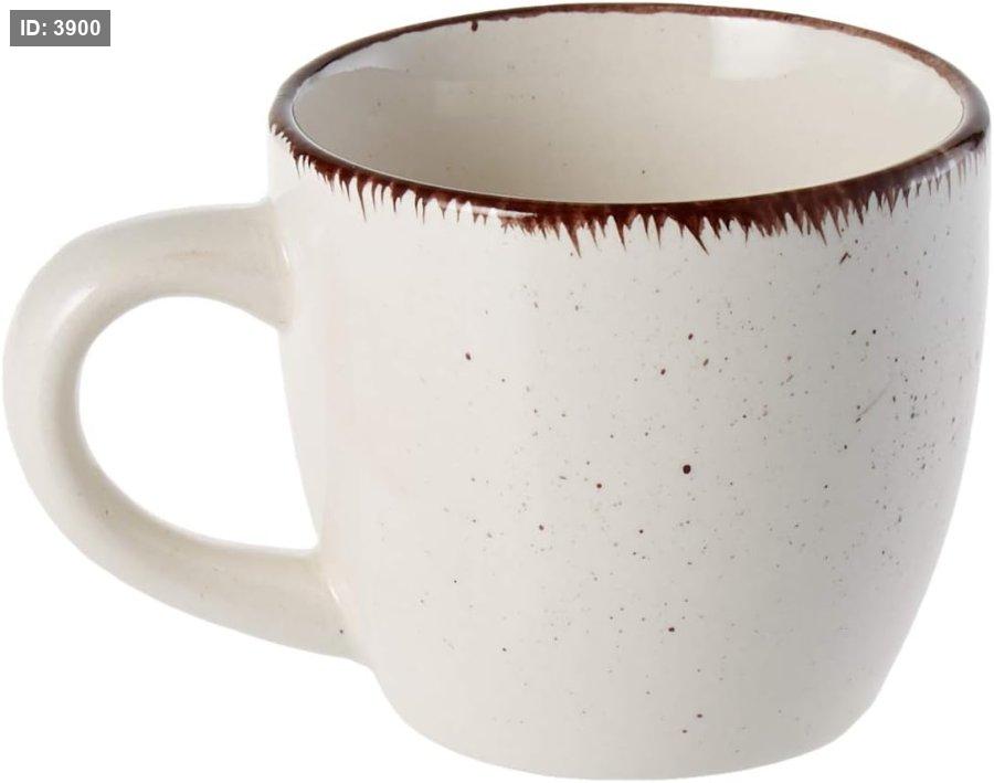 طقم فناجين من السيراميك الحجري لون بيج/أبيض مع بقع بنية صغيرة وحافة بنية 12 قطعة