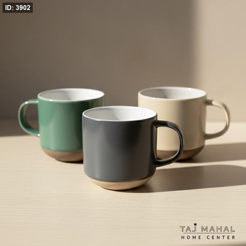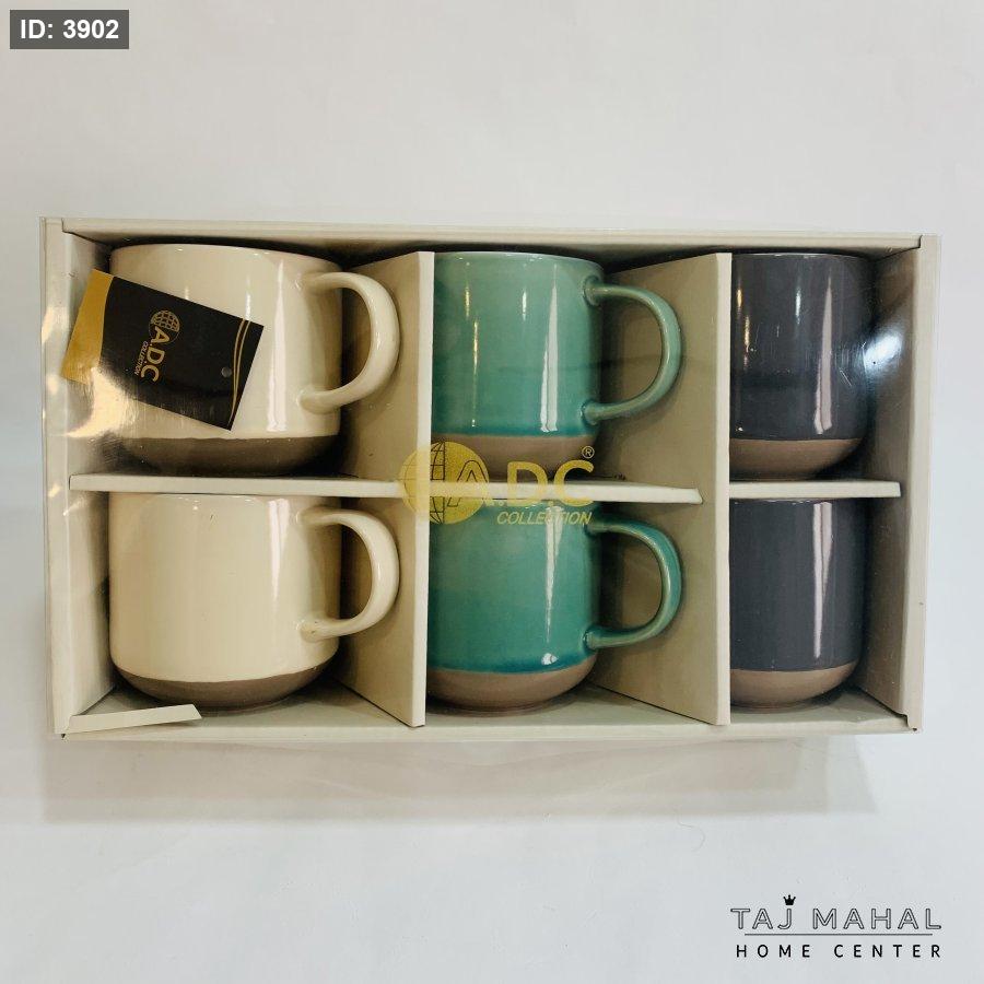 طقم كاسات شاي خزفية من 6 قطع جزء علوي لامع بألوان متنوعة وقاعدة بلون طبيعي غير لامع