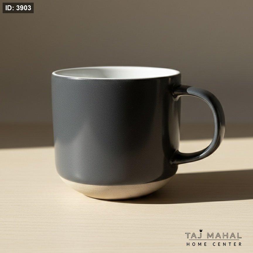 مج/كوب قهوة رمادي داكن بقاعدة بلون البيج/الطيني