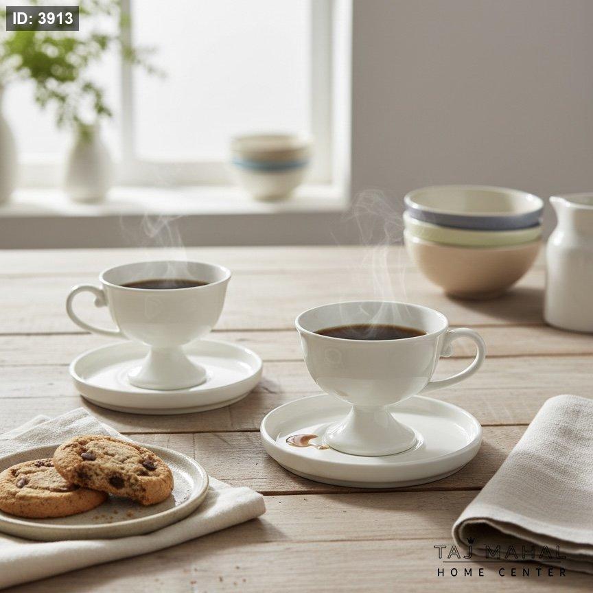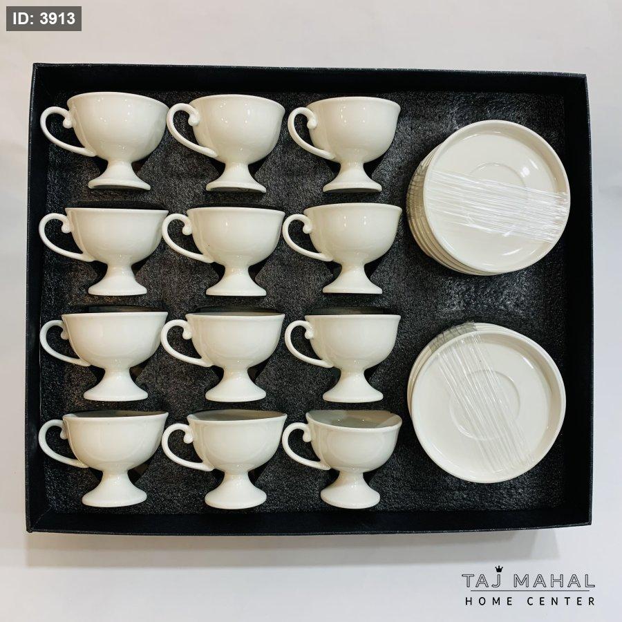 طقم فناجين قهوة وصحون بورسلان أبيض 24 قطعة