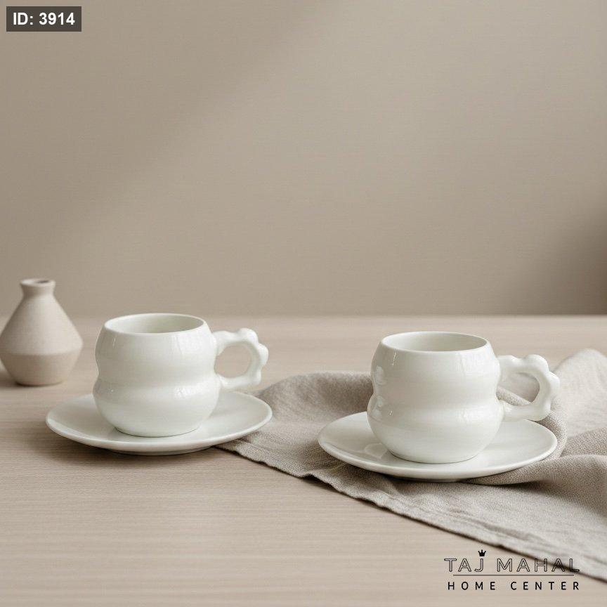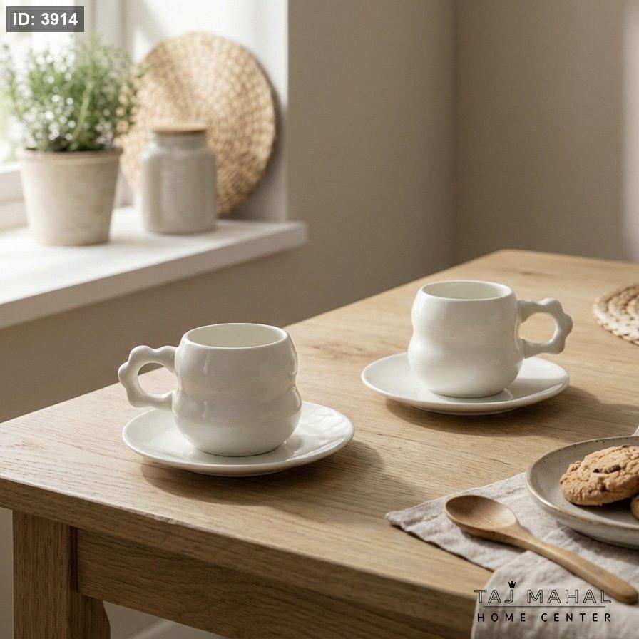 طقم فناجين قهوة وصحون بورسلان أبيض 24 قطعة