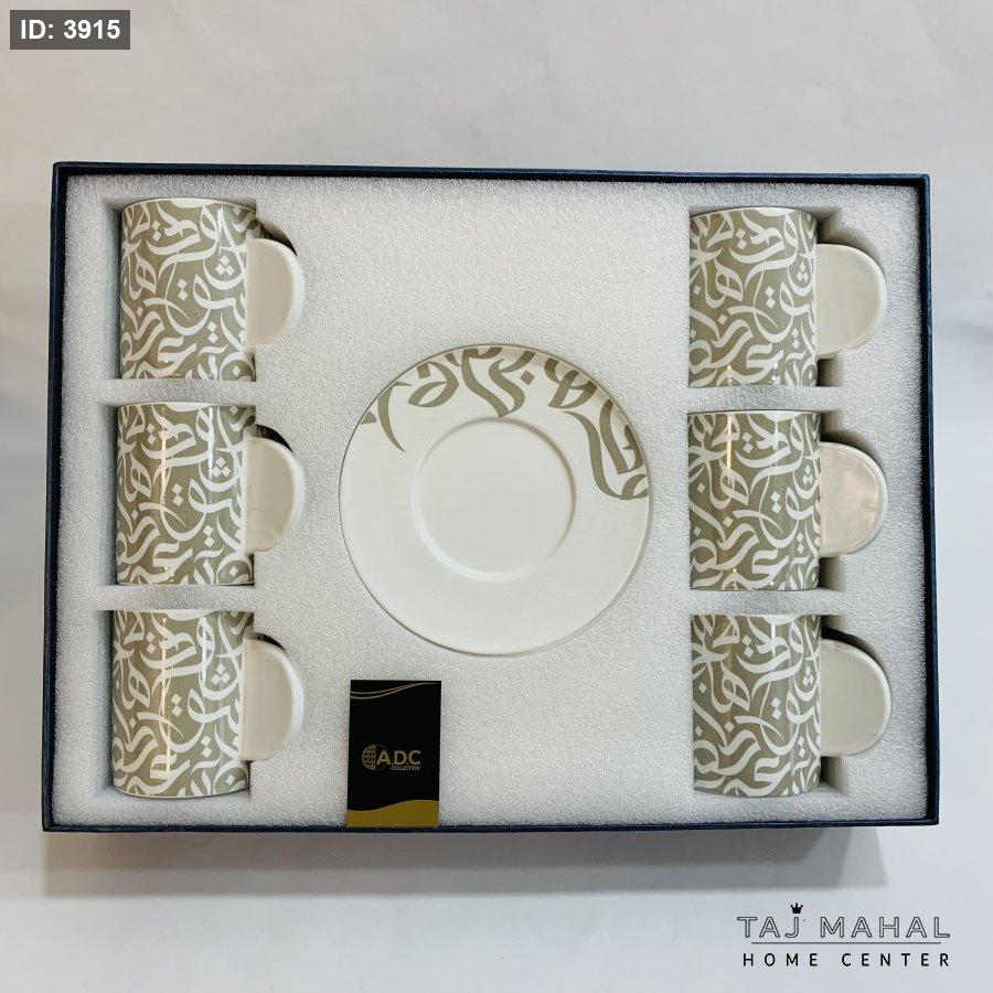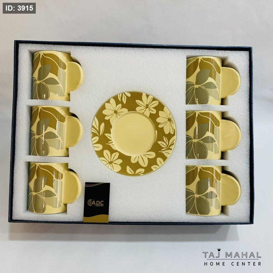 طقم كاسات شاي بورسلان مع صحون بنقوش مميزة 12 قطعة