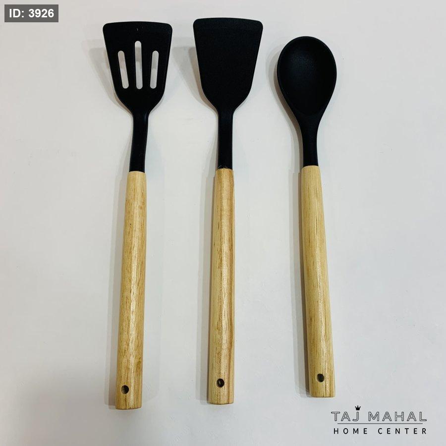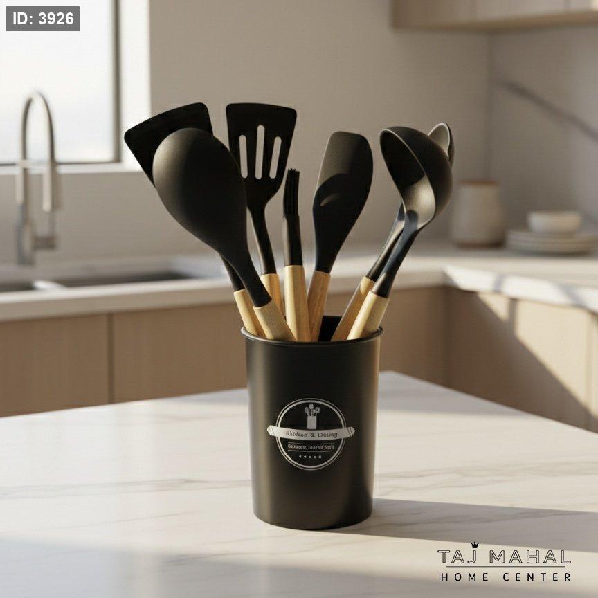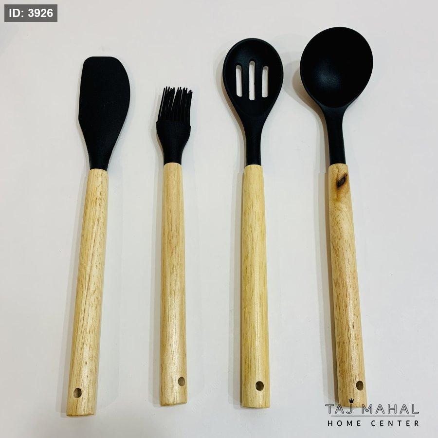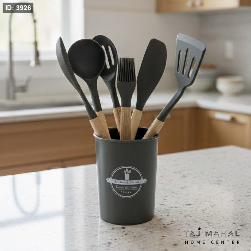 طقم كفاكير سيليكون مع يد خشبية وعلبة اسطوانية