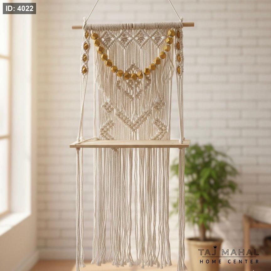 رف معلق بتصميم مكرمية