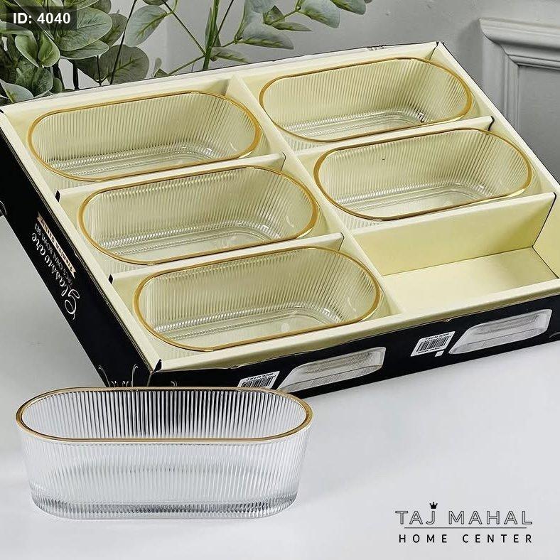 طقم صحون زجاجي مضلع بإطار ذهبي ٦ قطع