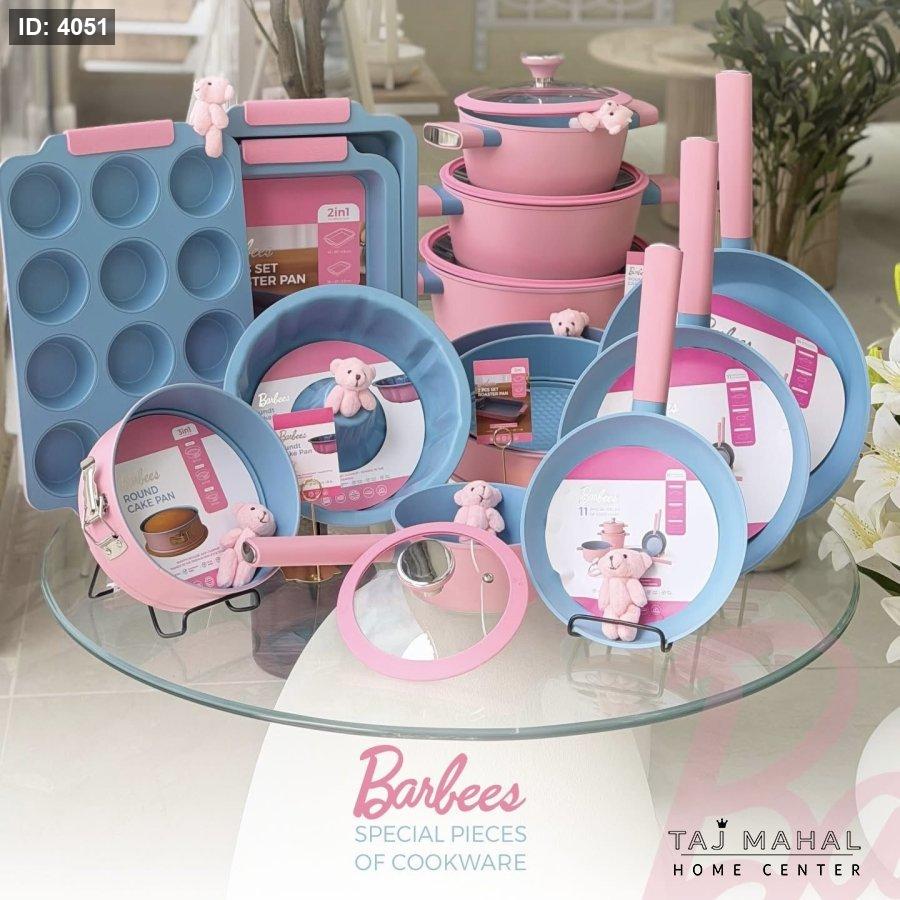 جدّدي مطبخك أو ابدئي تجهيزه بأناقة مع طقم الطهي Barbees المميز، الذي يجمع بين التصميم العصري الجذاب باللونين الوردي والأزرق السماوي والوظائف المتعددة لتلبية كافة احتياجات الطبخ والخبز. هذا الطقم الشامل يضمن لكِ تجربة طهي ممتعة وصحية بنتائج احترافية.