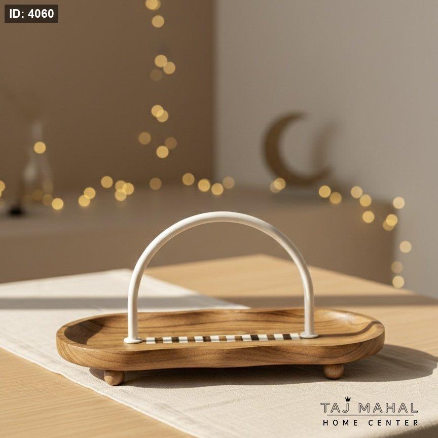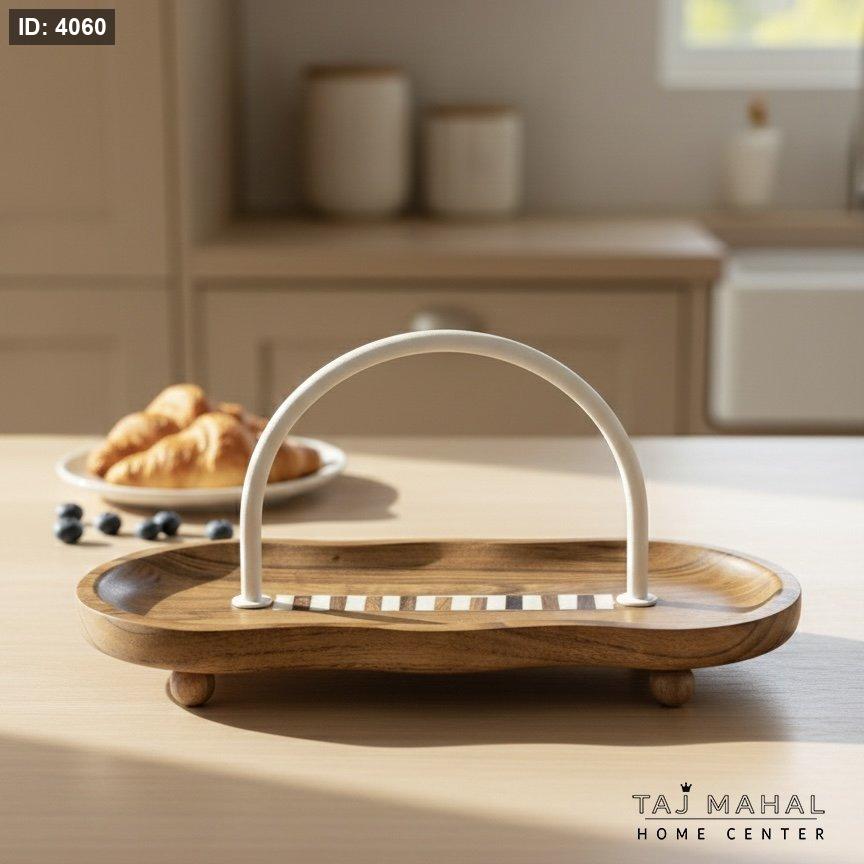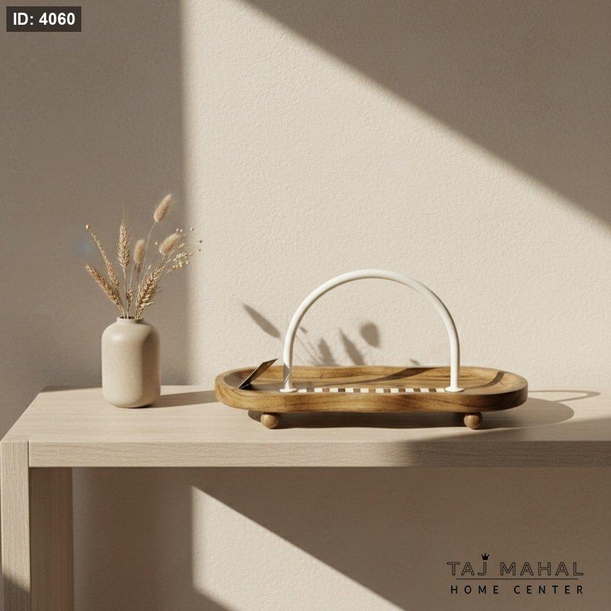 صينية تقديم خشبية مموجة مع يد بيضاء