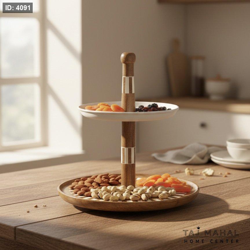 مضيفة تقديم خشبية من طبقتين بنمط شطرنجي