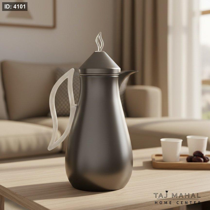 دلة قهوة بتصميم عربي بلون فضي مع يد شفافة