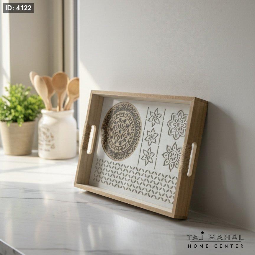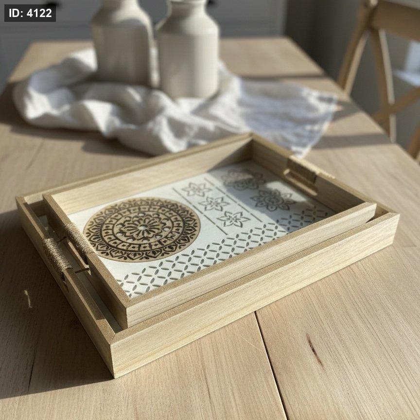 طقم صواني تقديم خشبية مستطيلة بنقوش CNC