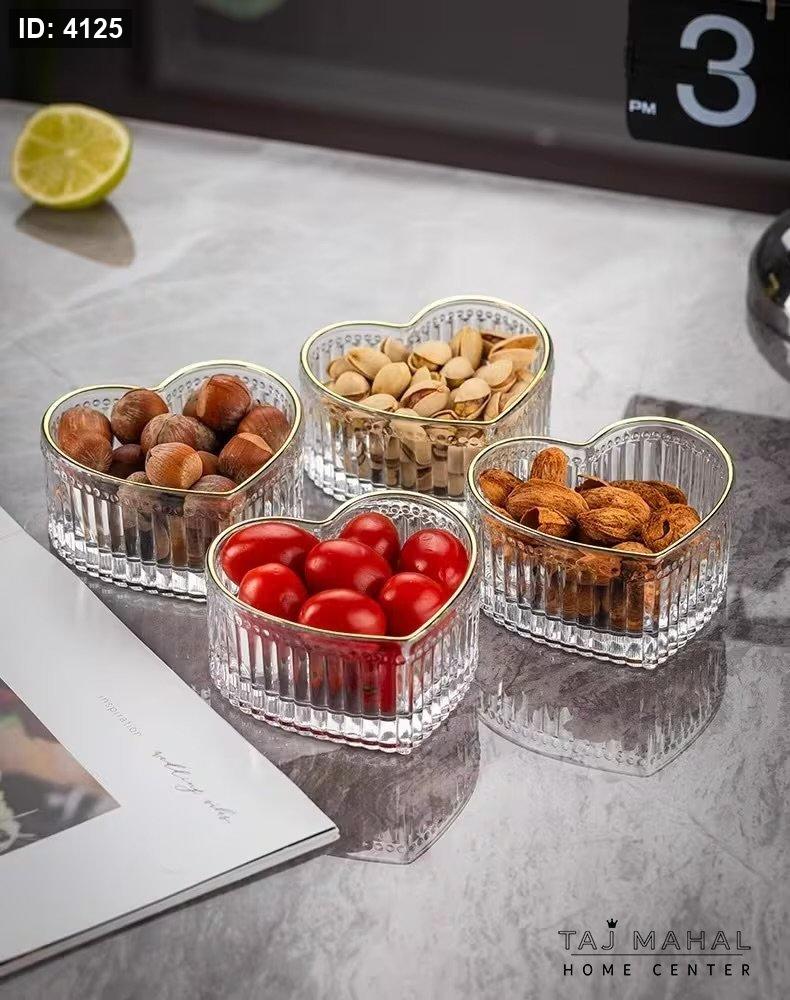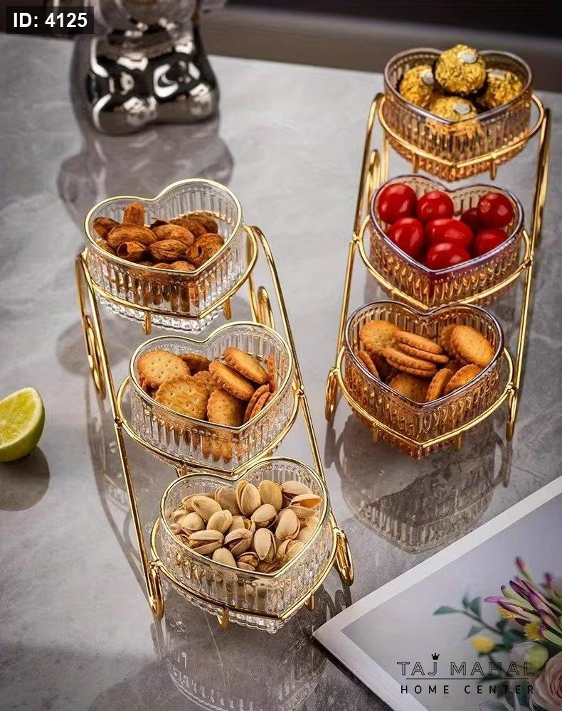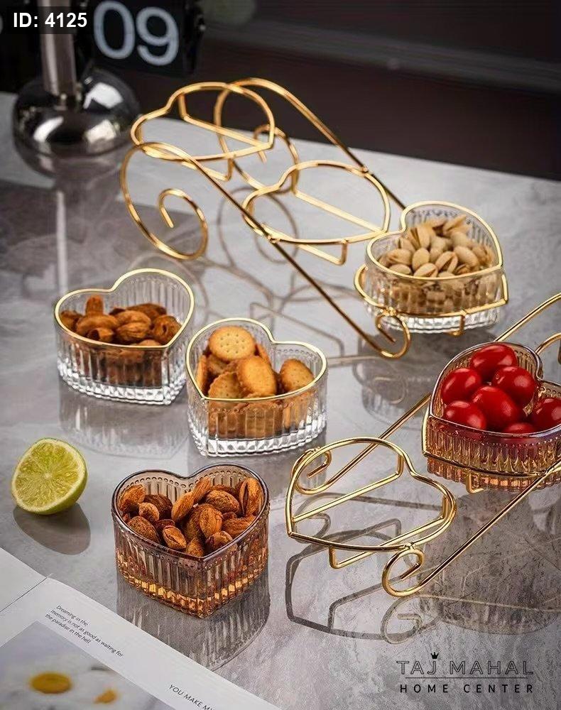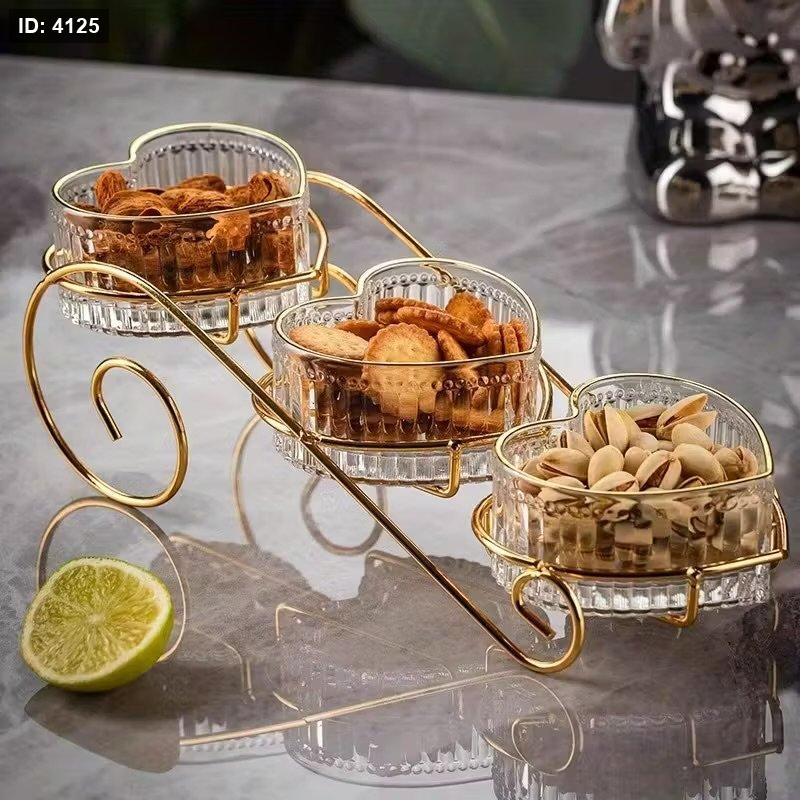 ستاند معدني مع صحون تقديم زجاجية على شكل قلب