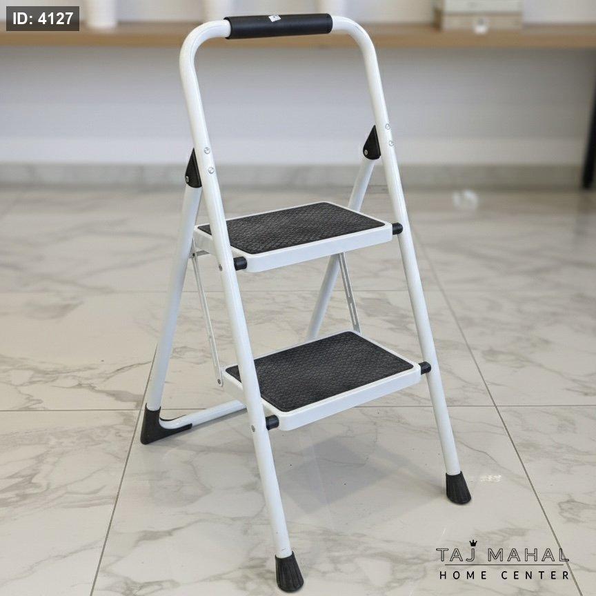 سلم منزلي معدني قابل للطي لون ابيض درجتين