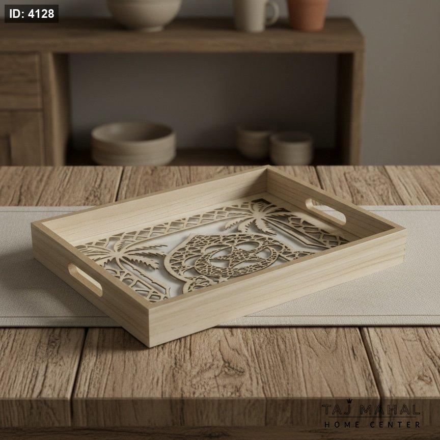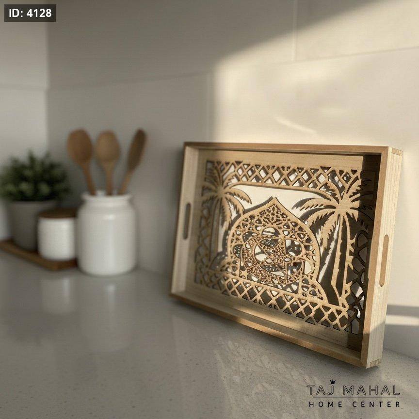 صينية تقديم خشبية بتصميم CNC رمضاني