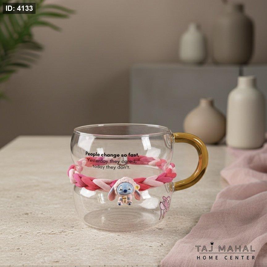 مج زجاجي مع سوار ستيتش اللطيف