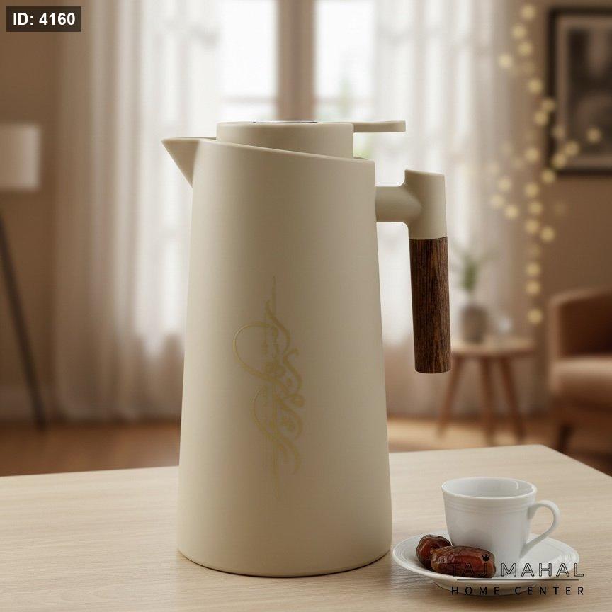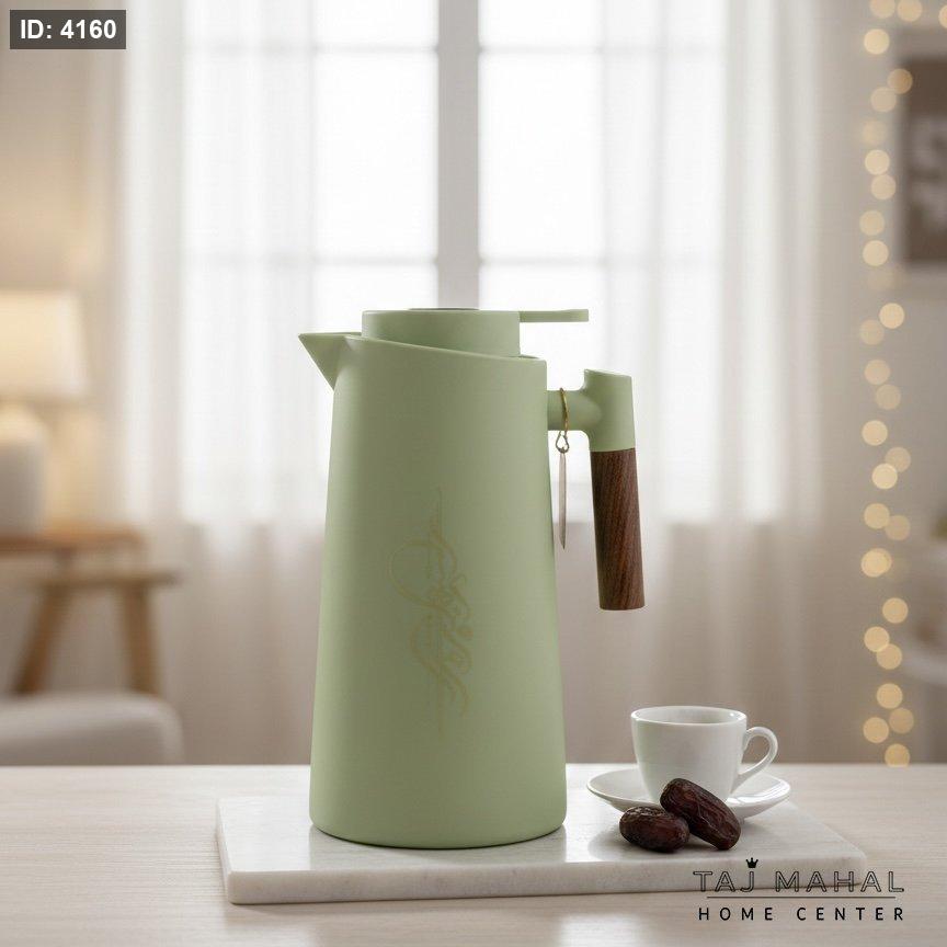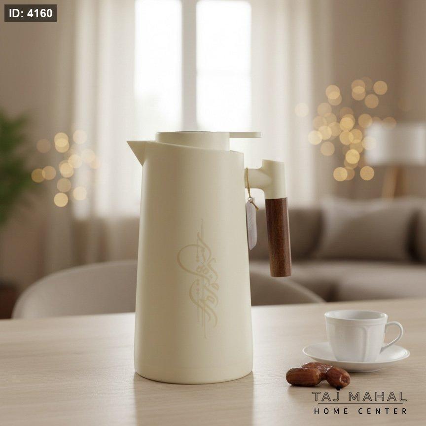 تيرموس قهوة مزخرف بخط عربي مع يد خشبية