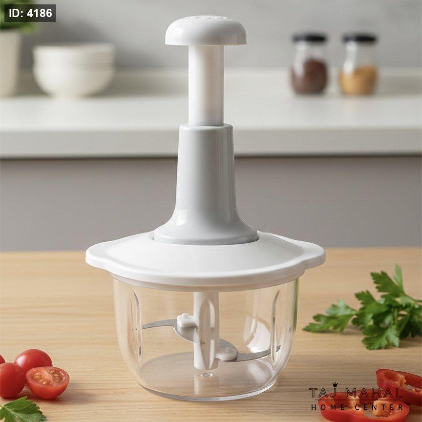 أداة مطبخ عملية ومتعددة الوظائف تعمل بآلية الضغط اليدوي دون الحاجة للكهرباء. مثالية لفرم الخضروات، الفواكه، المكسرات، وتحضير طعام الأطفال بسرعة وسهولة.