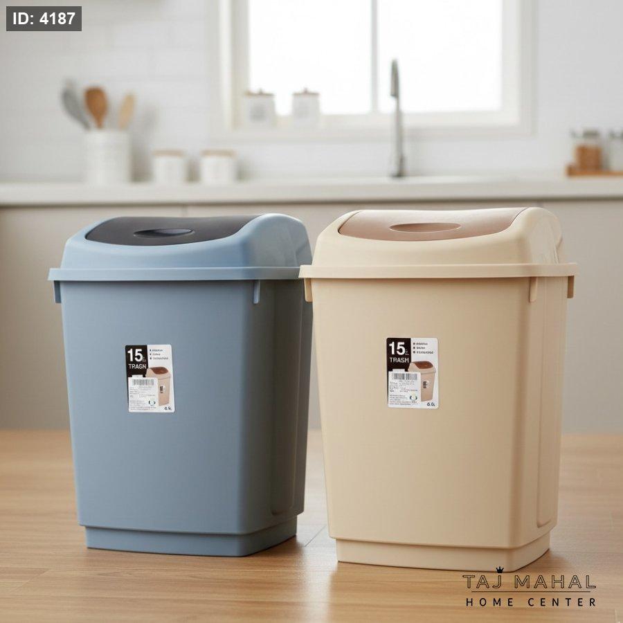 سلة مهملات بلاستيكية مع غطاء متأرجح
