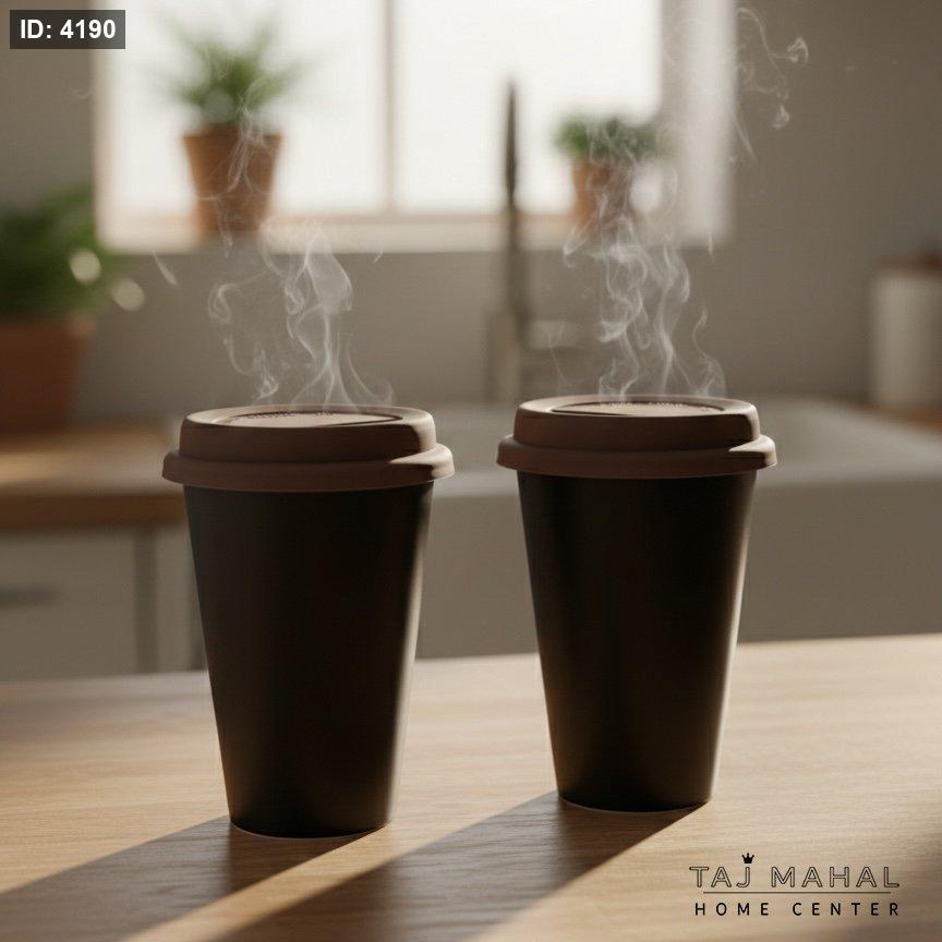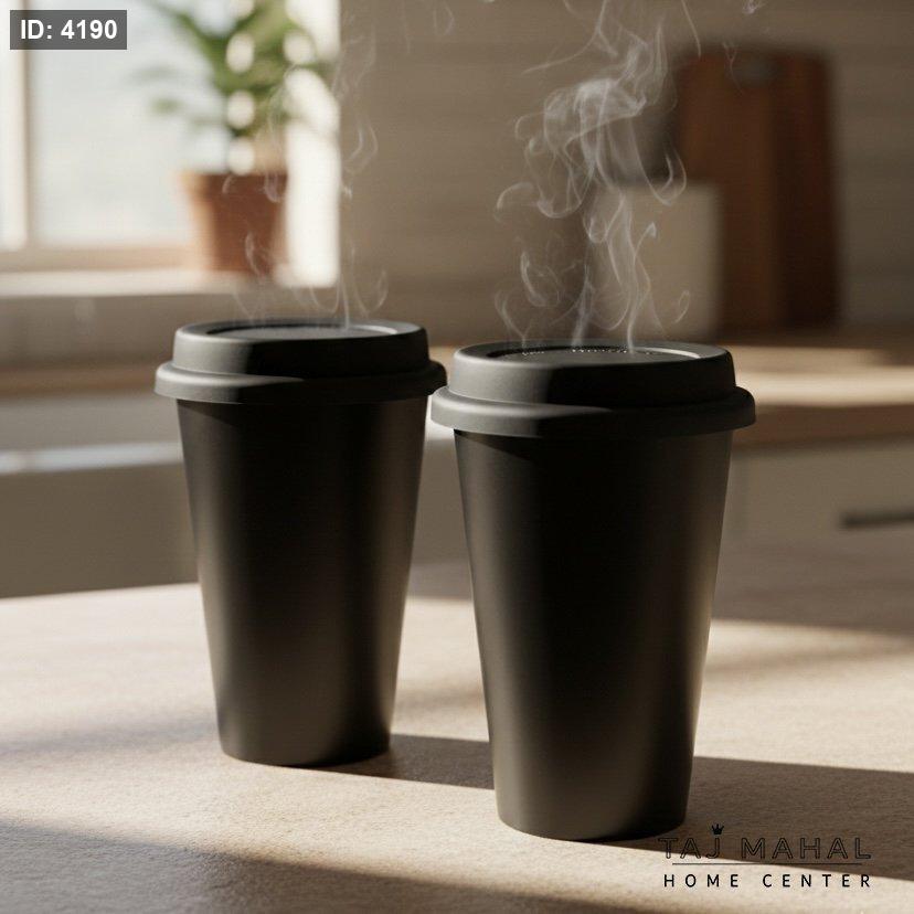 كوب قهوة سيراميك عازل حراريًا مع غطاء سيليكون قطعتين