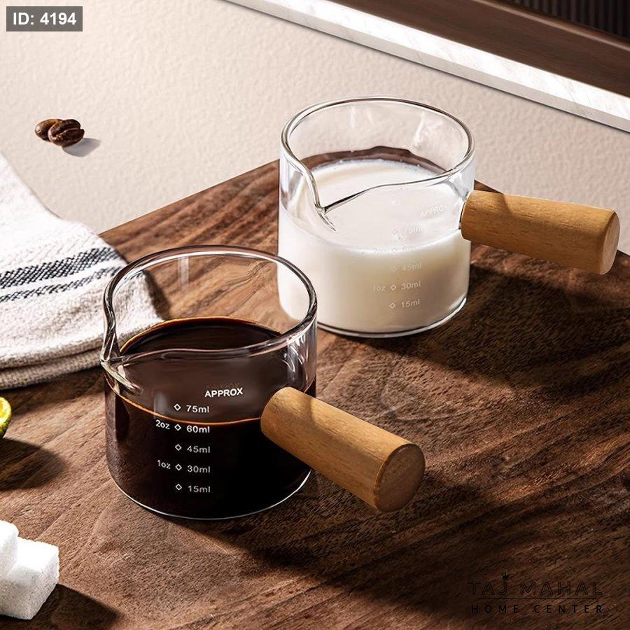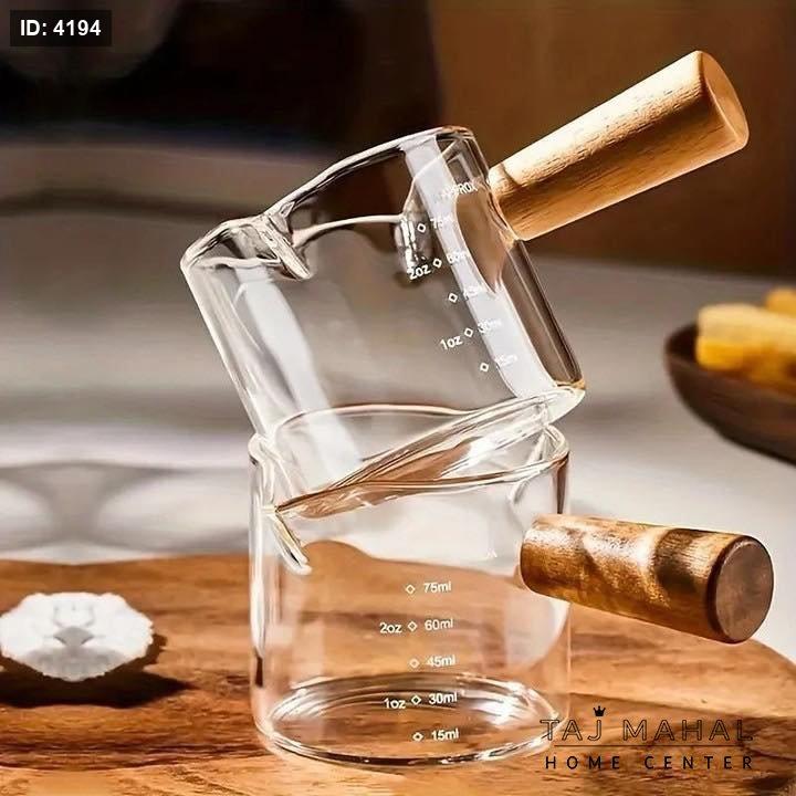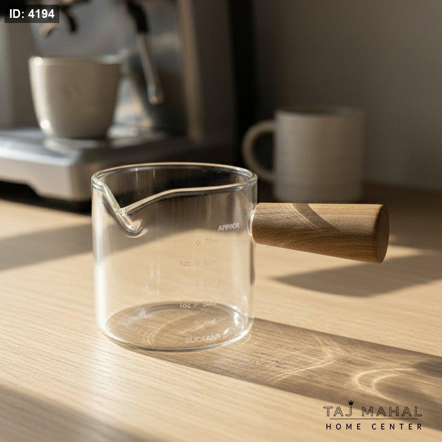 كوب قياس زجاجي حراري بمقبض خشبي
