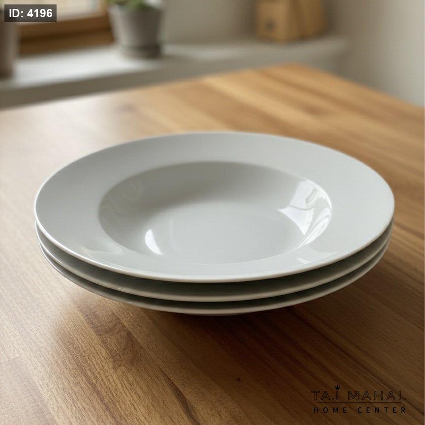 صحن بورسلان ابيض دائري عميق 3 قطع