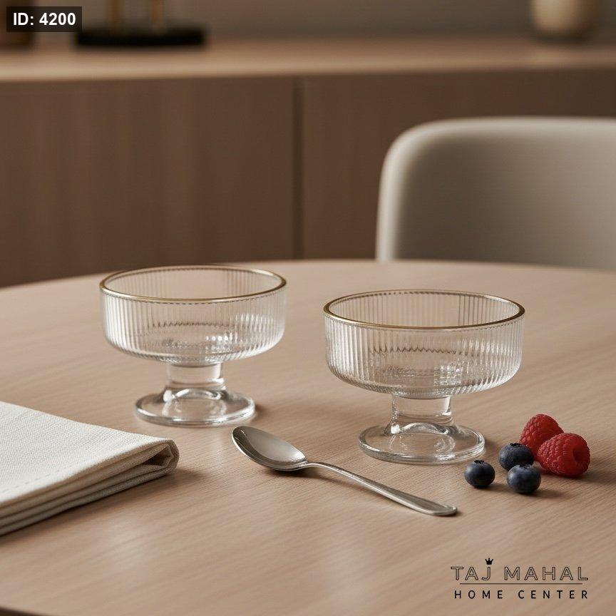 كاسات زجاج مضلعة مع حافة ذهبية لتقديم الحلويات