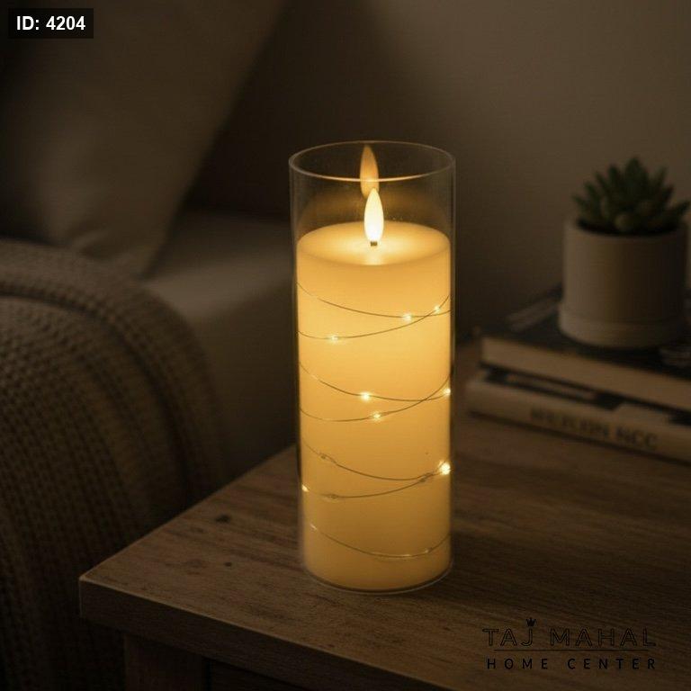 شمعة LED تعمل بالبطارية مع وعاء زجاج شفاف