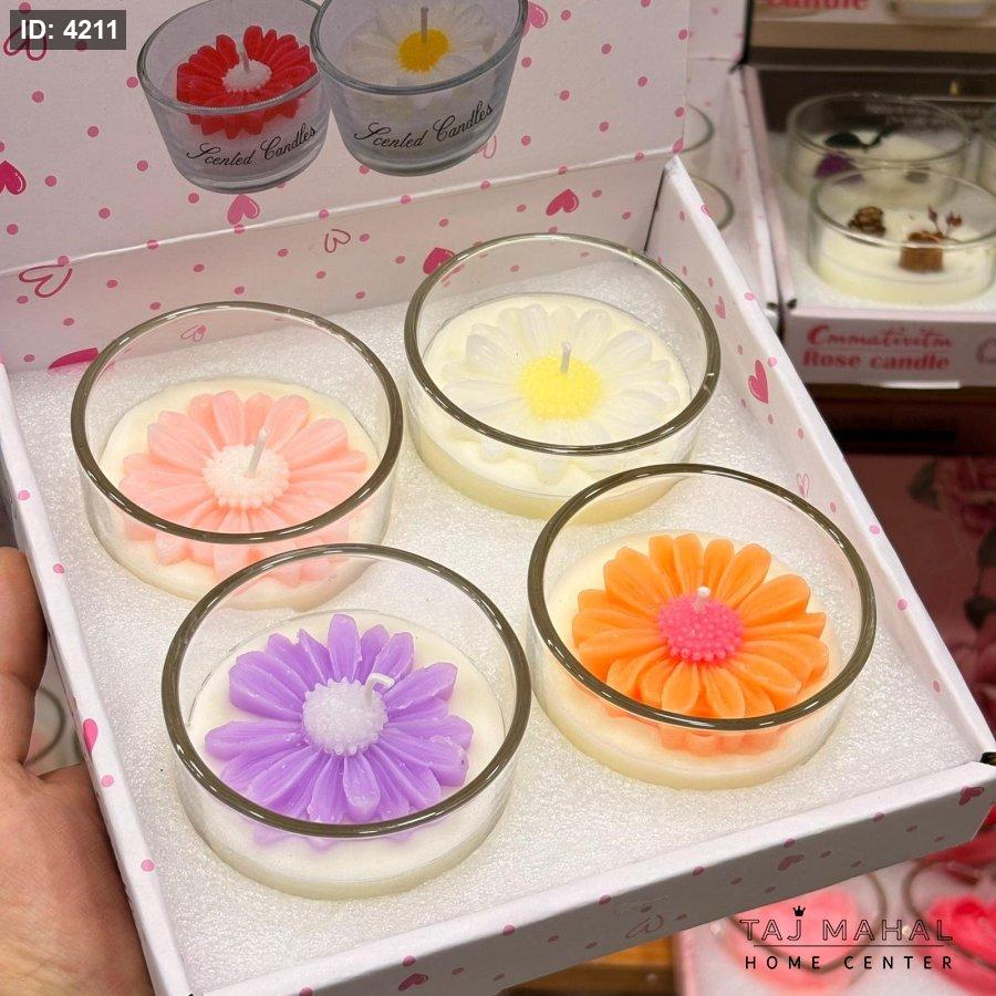 شموع ديكور معطرة على شكل وردة داخل كأس زجاجي