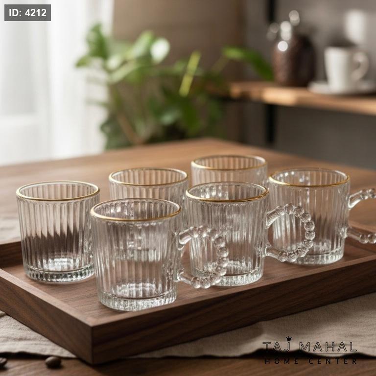 طقم فناجين قهوة و شاي حجم صغير بتصميم زجاجي شفاف مخطط