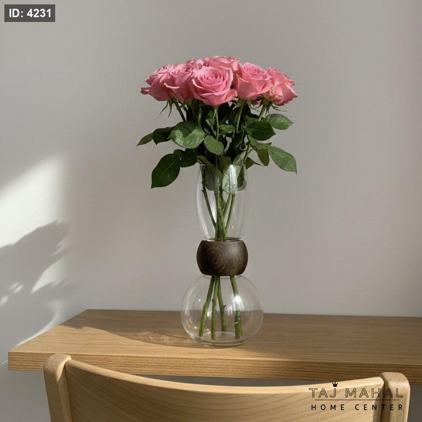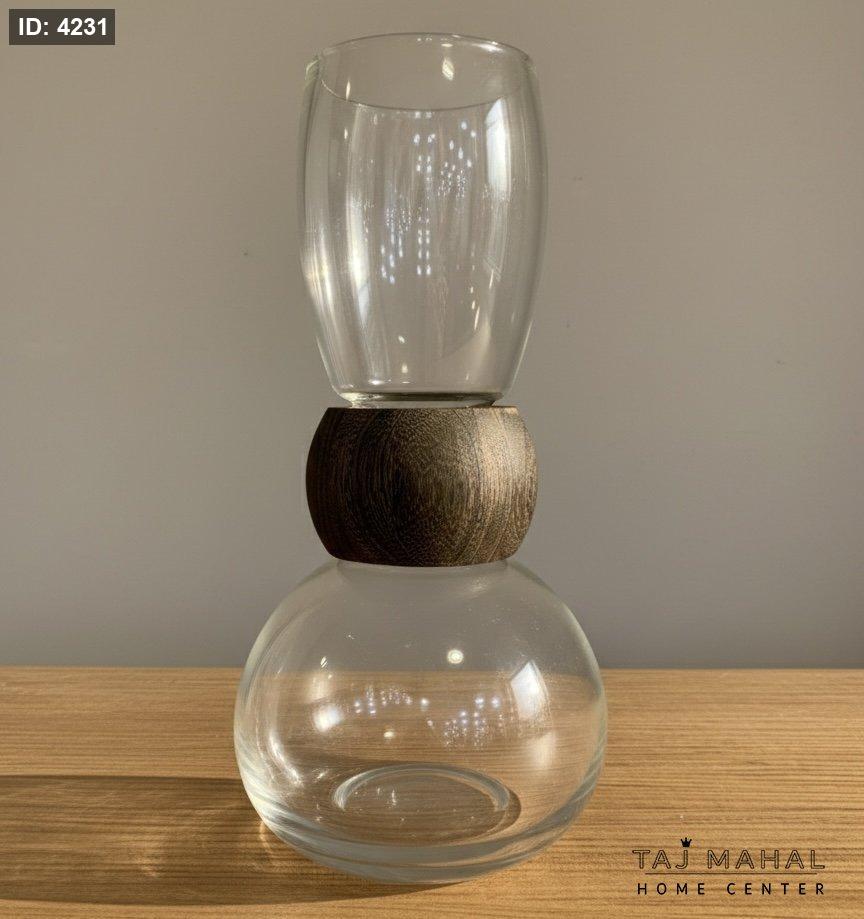 مزهرية زجاجية عصرية مع حلقة خشبية في المنتصف