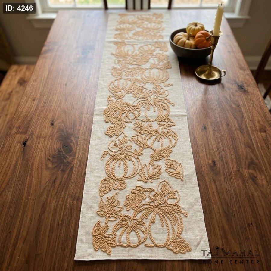 رنر مفرش طاولة بنقوش بارزة على شكل يقطين وأوراق شجر