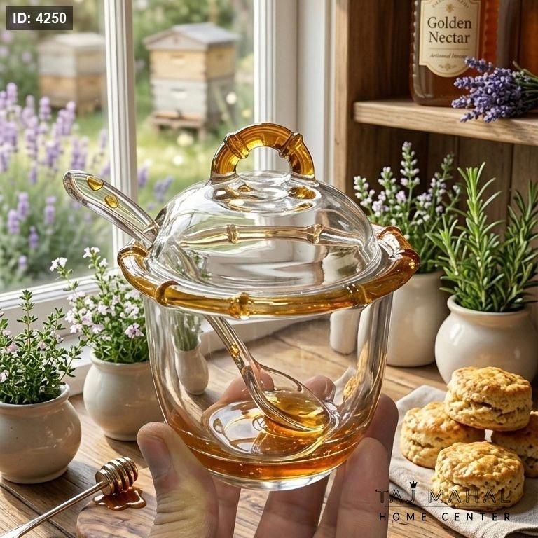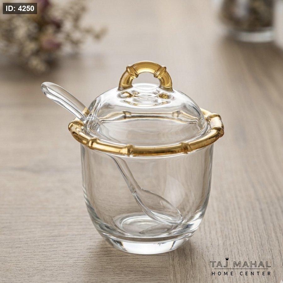 سكرية زجاجية مزدوجة الطبقات بداخلها زهور مجففة مع غطاء وملعقة خشب