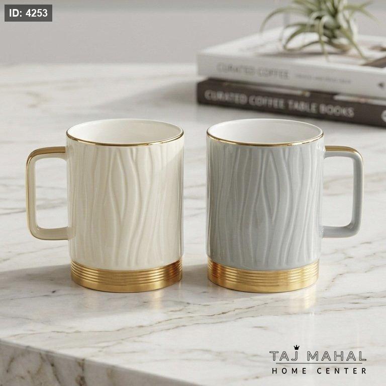 طقم ٦ كاسات بورسلان مموج مع قاعدة ذهبية