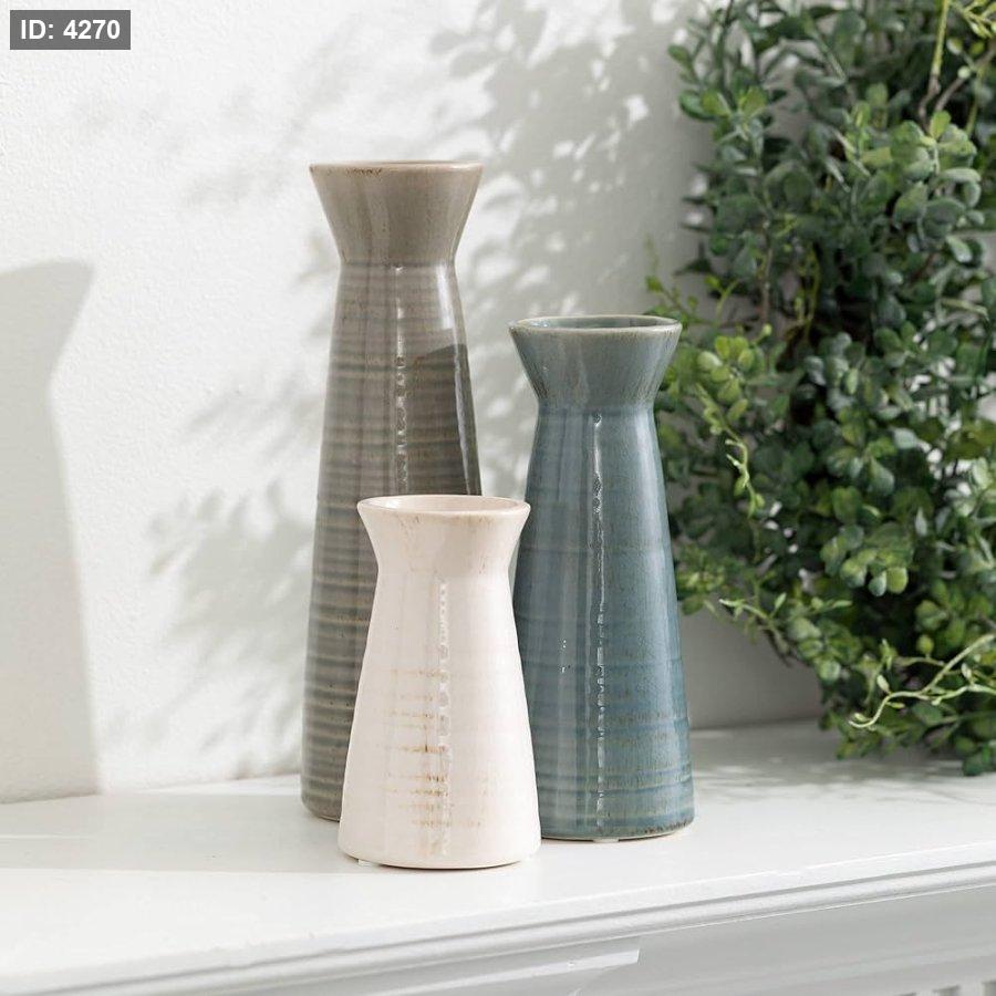 طقم 3 مزهريات سيراميك ريفي بالوان ترابية