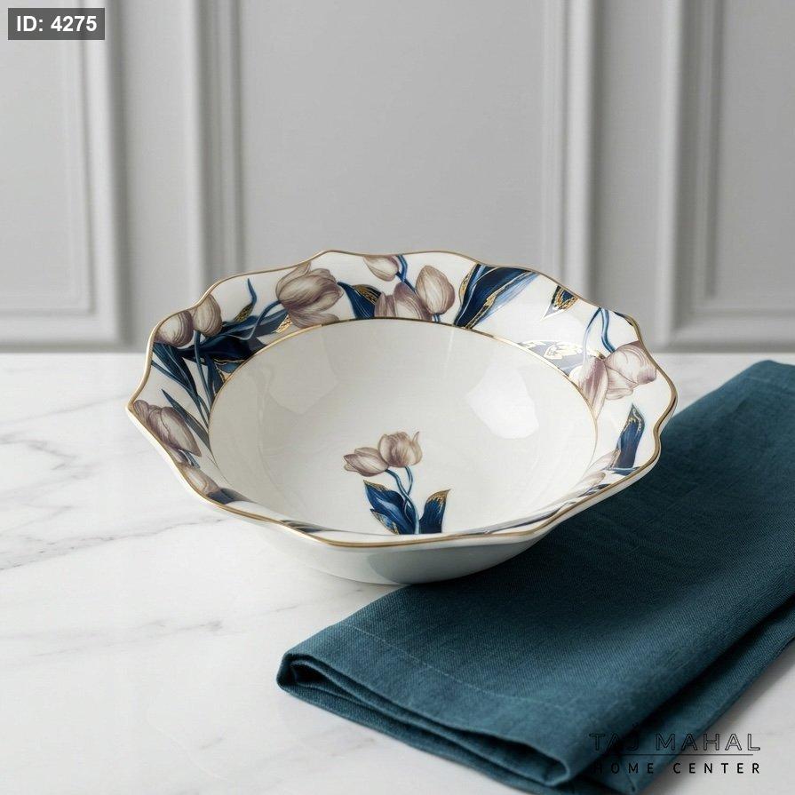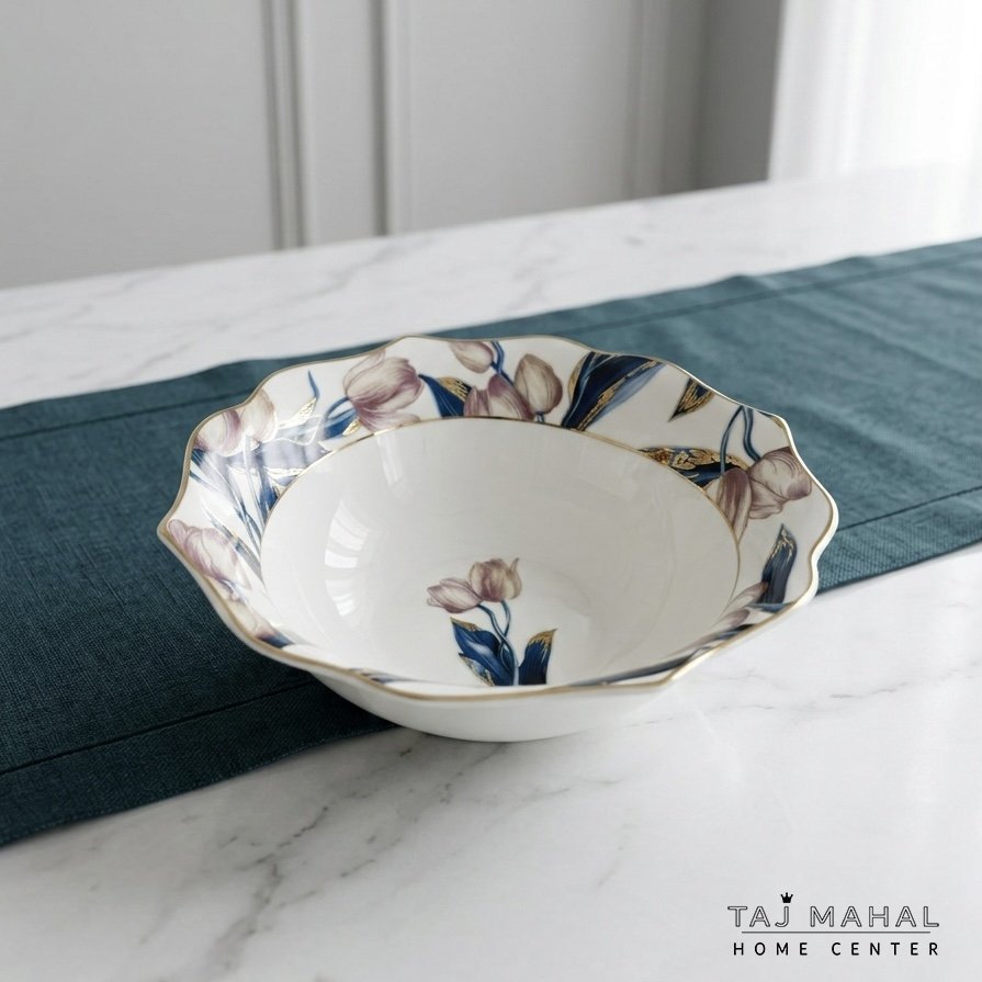 طقم ٦ صحون تقديم بحواف متموجة مع رسومات زهور باللونين الأزرق والوردي