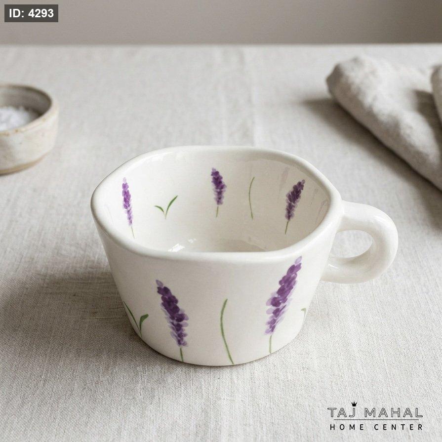 مج سيراميك ابيض برسومات زهور اللافندر