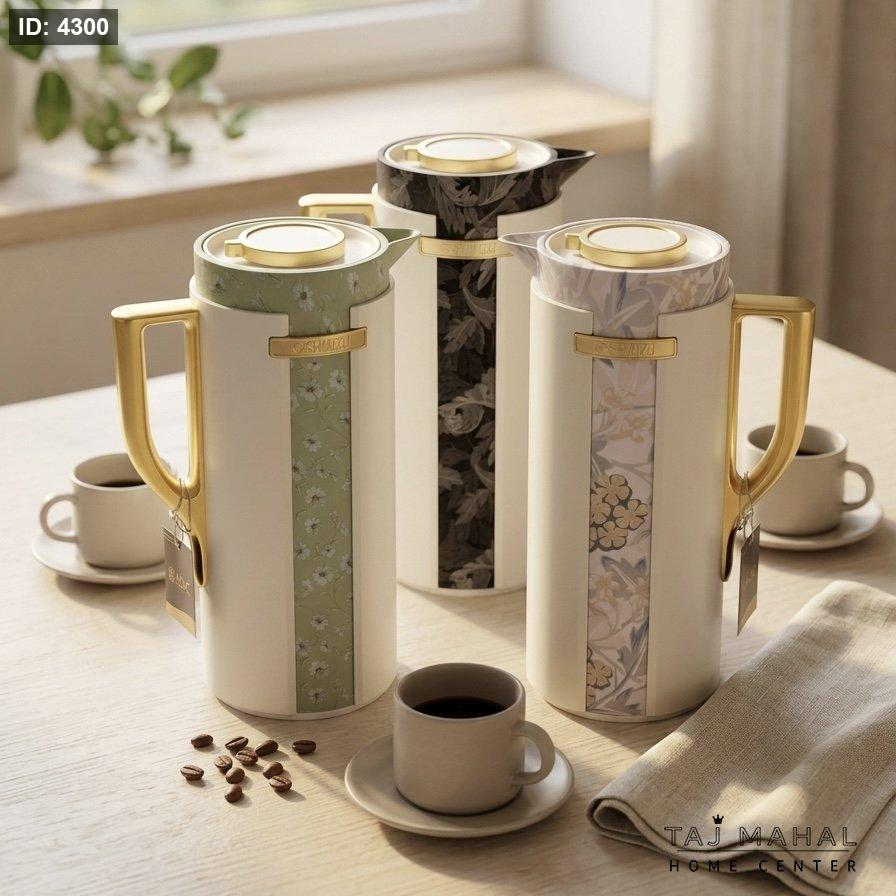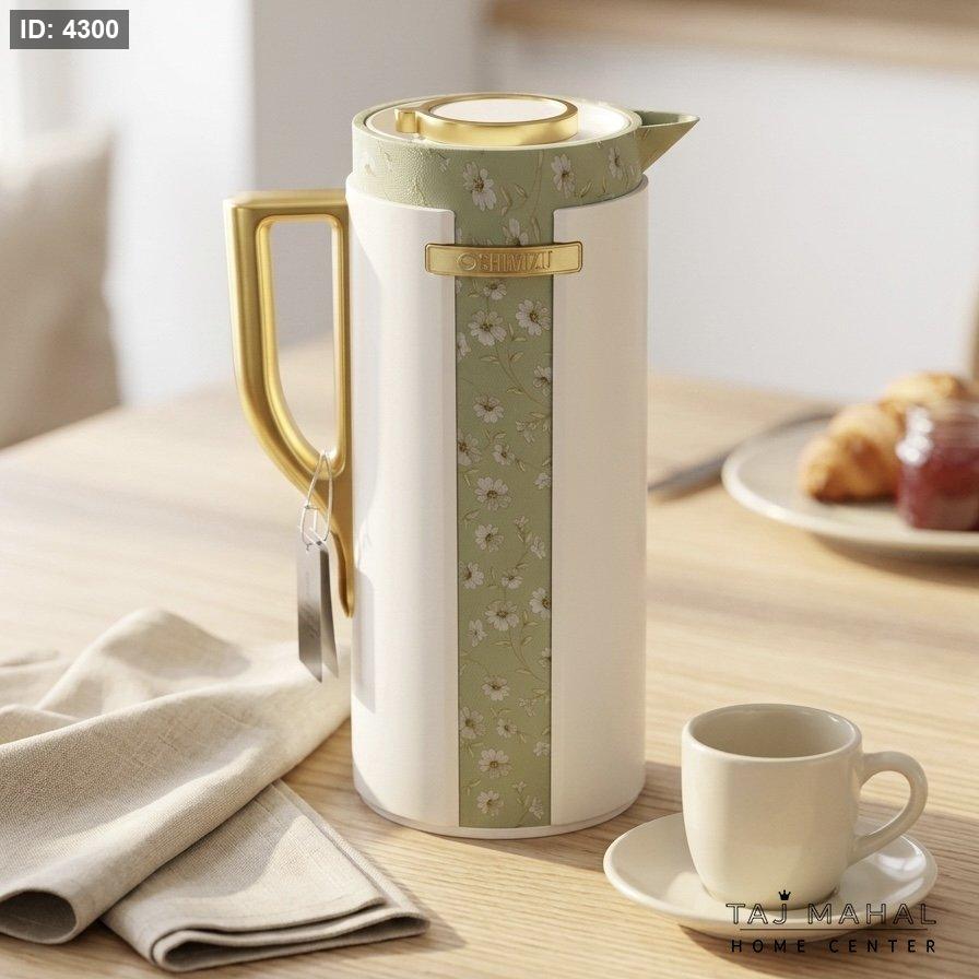 ترمس / دلة للقهوة والشاي بتصميم عصري بنقشة الزهور ولمسات ذهبية