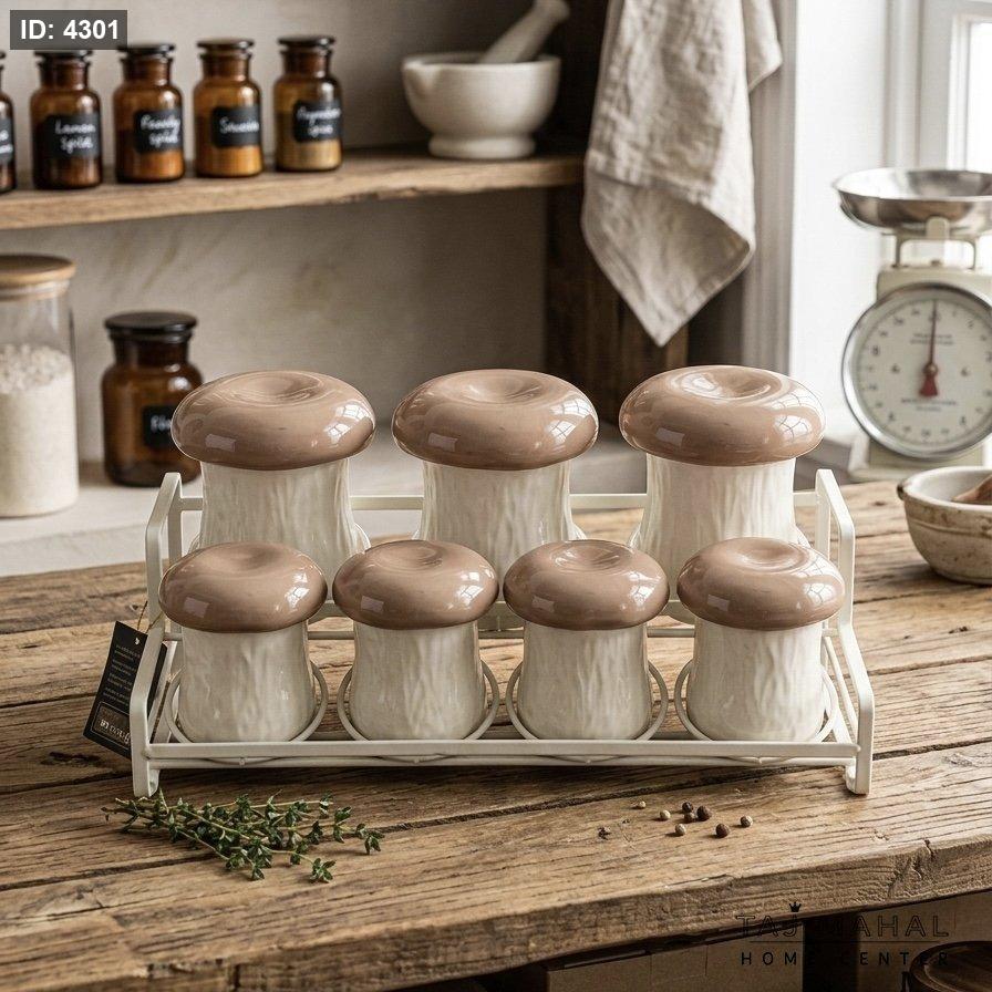 أناقة وترتيب في قطعة واحدة! طقم توابل بتصميم الفطر العصري، يجمع بين الجمالية العالية والجودة المتينة لتزيين مطبخك وطاولة طعامك.