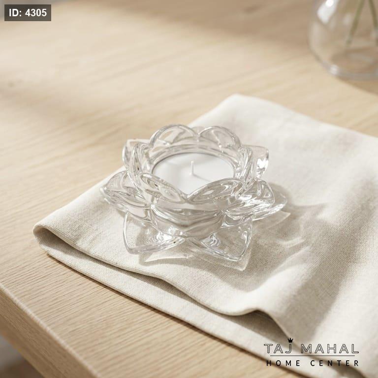 شمعدان زجاجي شفاف على شكل زهرة اللوتس